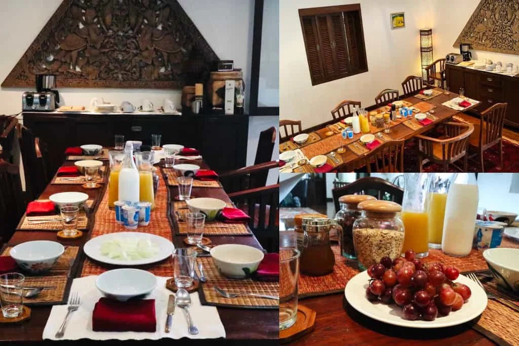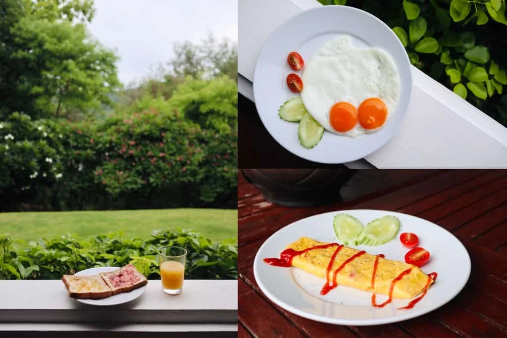 หลังจากทำอาหารร่วมกันและทำกิจกรรมจนเหนื่อยแล้ว เราก็แยกย้ายกันไปนอน พอตื่นเช้ามาแม่บ้านก็จะทำอาหารให้เราทาน นอกจากอาหารที่เราสามารถเลือกได้ว่าจะทานอะไรแล้ว ทางที่พักยังมีน้ำ นม ผลไม้ ขนมปัง กาแฟ ให้เลือกทานอีกด้วย