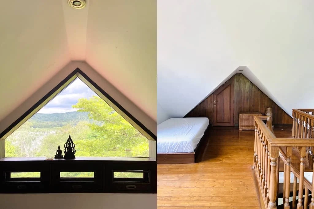 ตรงห้องใต้หลังคามองเห็นวิวเขื่อนแม่ออนด้วยนะ