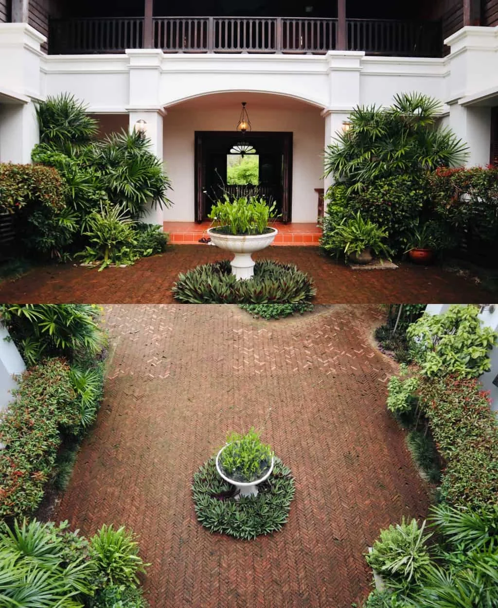 บริเวณรอบๆ บ้านตกแต่งสไตล์ล้านนา ล้อมรอบไปด้วยต้นไม้ ดูร่มรื่นมากๆ