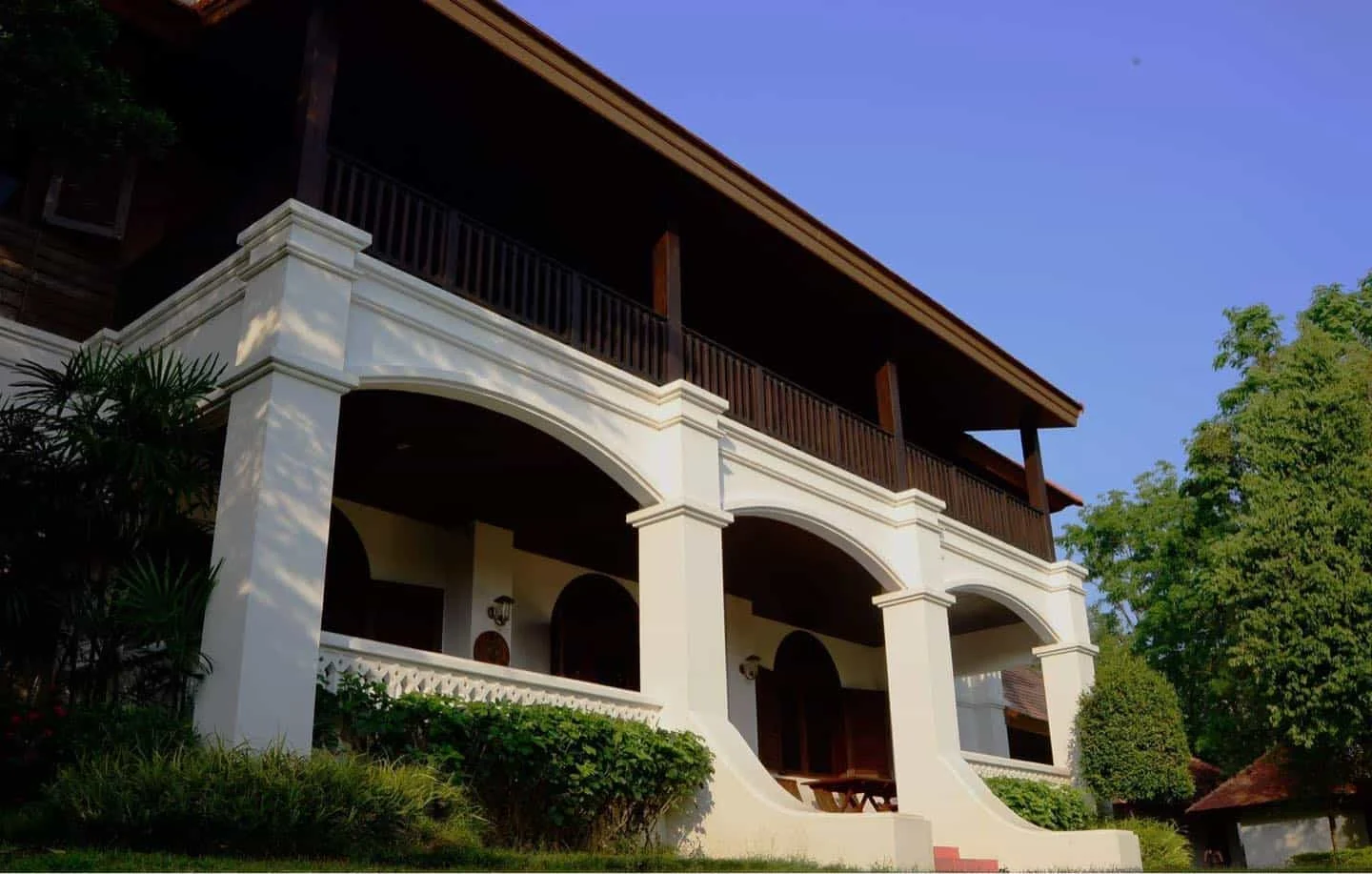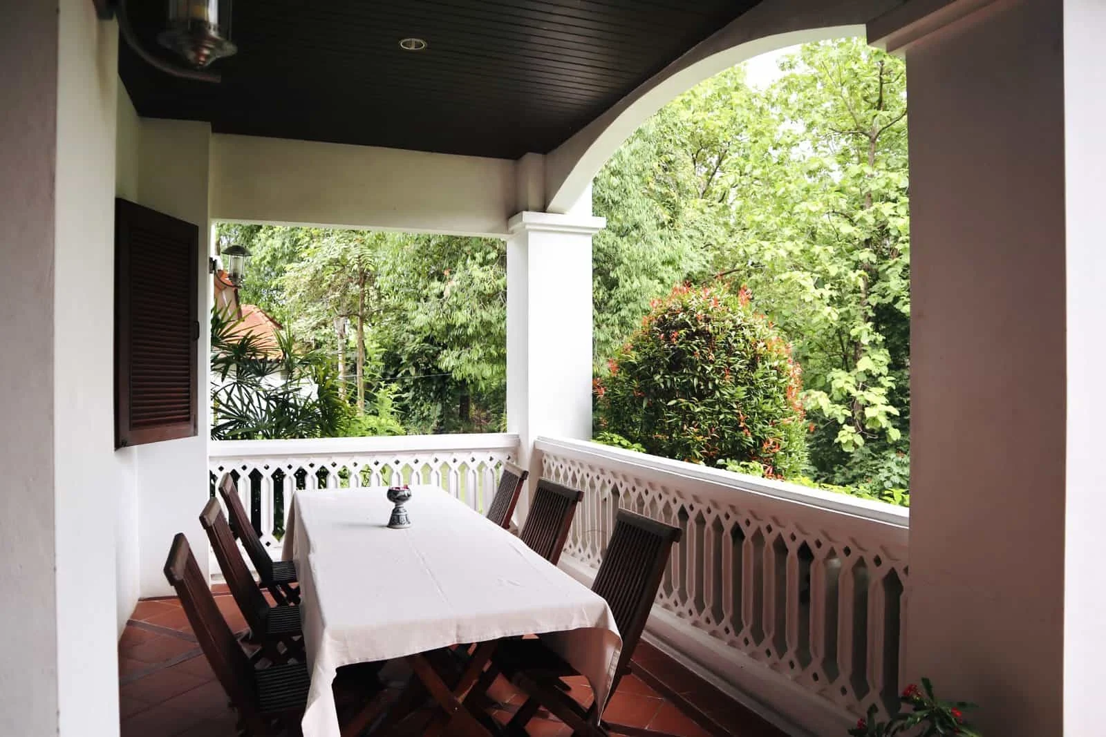 บริเวณรอบๆ บ้านตกแต่งสไตล์ล้านนา ล้อมรอบไปด้วยต้นไม้ ดูร่มรื่นมากๆ