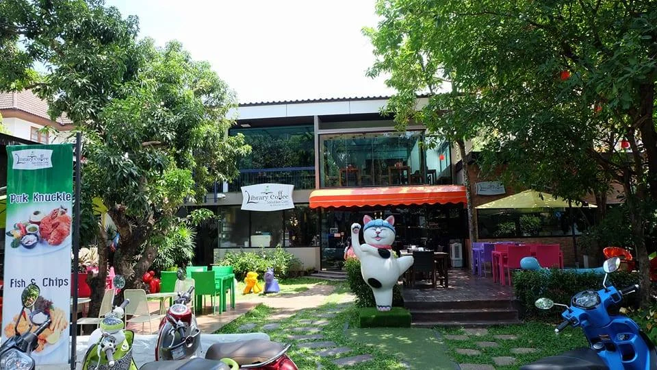 แนะนำอีกร้าน Library Coffee Salad Bar Cafe อยู่ใน นิมมาน ซ.5 เป็น Cafe ที่มีมุมให้เลือกนั่ง 3 โซน คือ