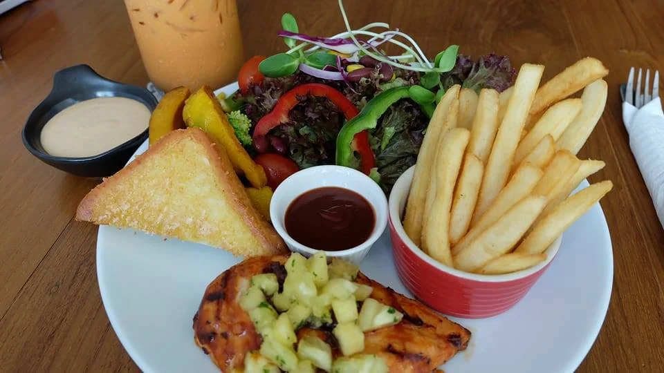 นอกจากมี กาแฟ ชา เค้ก ขนมหวานแล้ว ทางร้านยังมีอาหาร สไตล์ฟิวชั่น ไว้ให้บริการด้วย ในส่วนของอาหารนั่นมีให้เลือกเยอะ ราคาไม่แพง