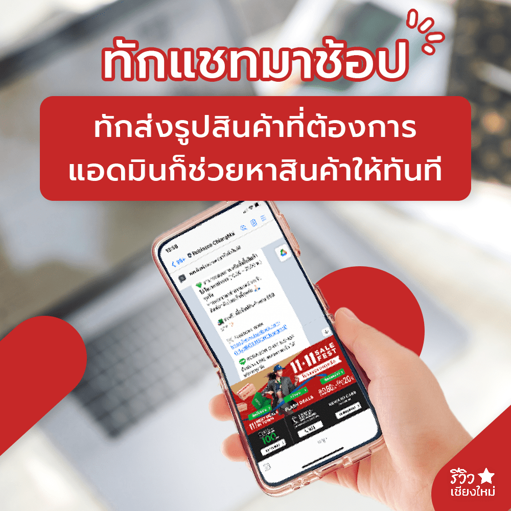 - “ทักแชทมาช้อป” เพียงส่งภาพของที่ต้องการซื้อ หรือทักถาม แอดมินก็จัดการช่วยหาสินค้าให้