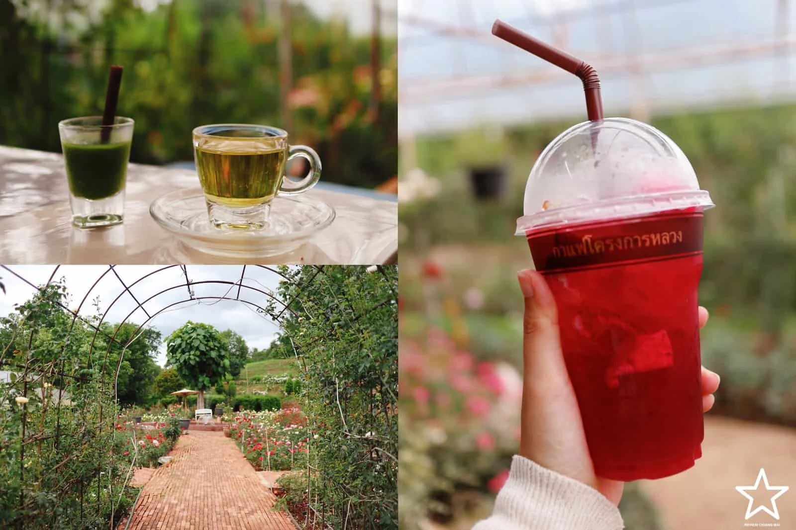 นอกจากสวนกุหลาบสวยๆ แล้วที่นี่ยังมีอาหารออร์แกนิกที่ปรุงจากวัตถุดิบที่สดสะอาดและมีเครื่องดื่ม ขนมต่างๆ ด้วยนะ