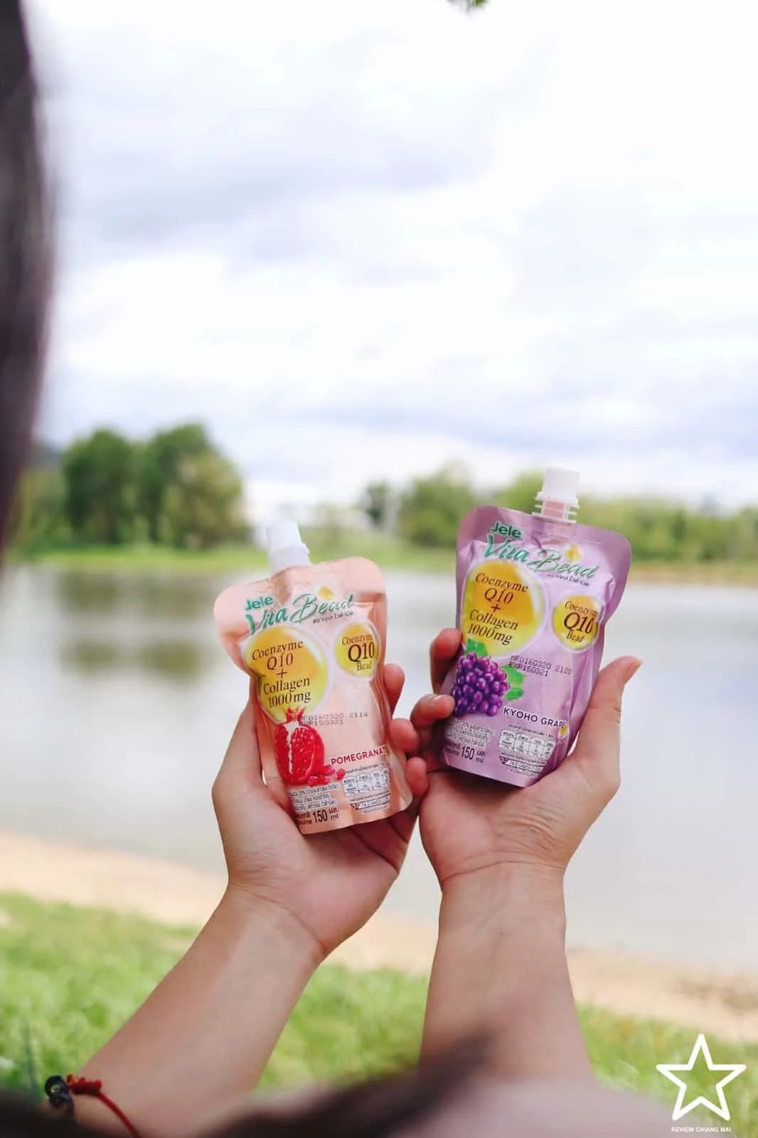 ก่อนจะออกเดินทางต่อเราต้องมาเติมพลังกันก่อนด้วย Jele Vita Bead เครื่องดื่มผลไม้รวม 20% มีโคเอ็นไซม์คิวเท็นที่อยู่ในเม็ดบีด เคี้ยวกรุบๆ ช่วยให้อิ่มท้องแถมแคลอรี่เพียง 45 kcal เท่านั้นนน