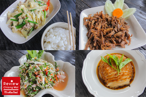 หน่อไม้น้ำผัด ก้านเห็ดปรุงรส ยำยอดใบชาและ เกาหยก อาหารขึ้นชื่อประจำร้าน