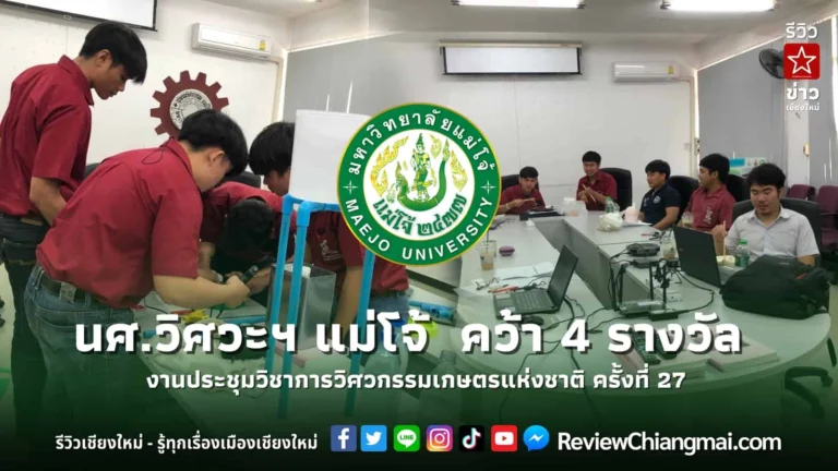 นักศึกษาหลักสูตรวิศวกรรมศาสตรบัณฑิต สาขาวิศวกรรมเกษตร คณะวิศวกรรมและอุตสาหกรรมเกษตร มหาวิทยาลัยแม่โจ้ คว้า 4 รางวัล จากการประชุมวิชาการโครงงาน วิศวกรรมเกษตรแห่งชาติ ครั้งที่ 27 จัดโดย สาขาวิชาวิศวกรรมเกษตรและชีวภาพ คณะวิศวกรรมศาสตร์ มหาวิทยาลัยเทคโนโลยีราชมงคลล้านนา จังหวัดเชียงใหม่ ร่วมกับสมาคมวิศวกรรมเกษตรแห่งประเทศไทย TSAE – Thai Society of Agricultural Engineering เพื่อเป็นเวทีที่ให้นักศึกษาในวงการวิชาชีพเดียวกัน ได้มีโอกาสนำเสนอผลงานทางวิชาการ และแลกเปลี่ยนความรู้ ประสบการณ์ และความคิดเห็นทางวิชาการ อันจะส่งผลให้นักศึกษาเกิดความกระตือรือร้นและความมุ่งมั่นที่จะศึกษาค้นคว้าและทำโครงงานวิศวกรรมเกษตรให้ดีที่สุด