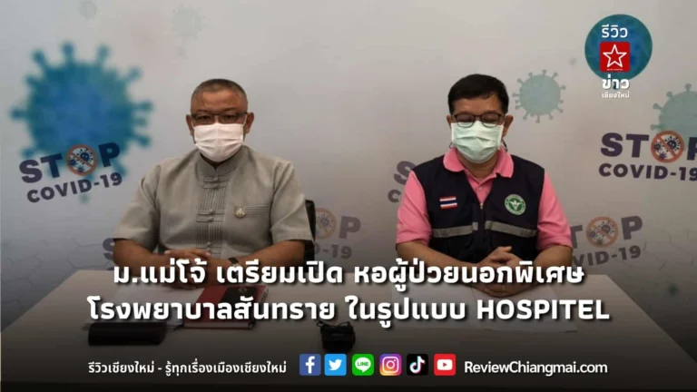มหาวิทยาลัยแม่โจ้ จะจัดปรับปรุงศูนย์ที่พักนานาชาติวิทยาลัยนานาชาติ ให้เป็นหอผู้ป่วยนอกพิเศษโรงพยาบาลสันทราย ในรูปแบบ Hospitel สำหรับพักและกักตัวผู้สัมผัสเชื้อ 14 วัน ในกรณีที่สัมผัสเชื้อทั้งครอบครัว โดยเริ่มจากนักศึกษาและบุคลากรของมหาวิทยาลัยเป็นกลุ่มแรก ทั้งนี้ ผู้สัมผัสเชื้อที่เข้าพักสามารถเบิกประกันสังคม บัตรทอง และประกันชีวิต ได้ตามสิทธิ์ของผู้ประกันตนที่ สปสช. กำหนด
