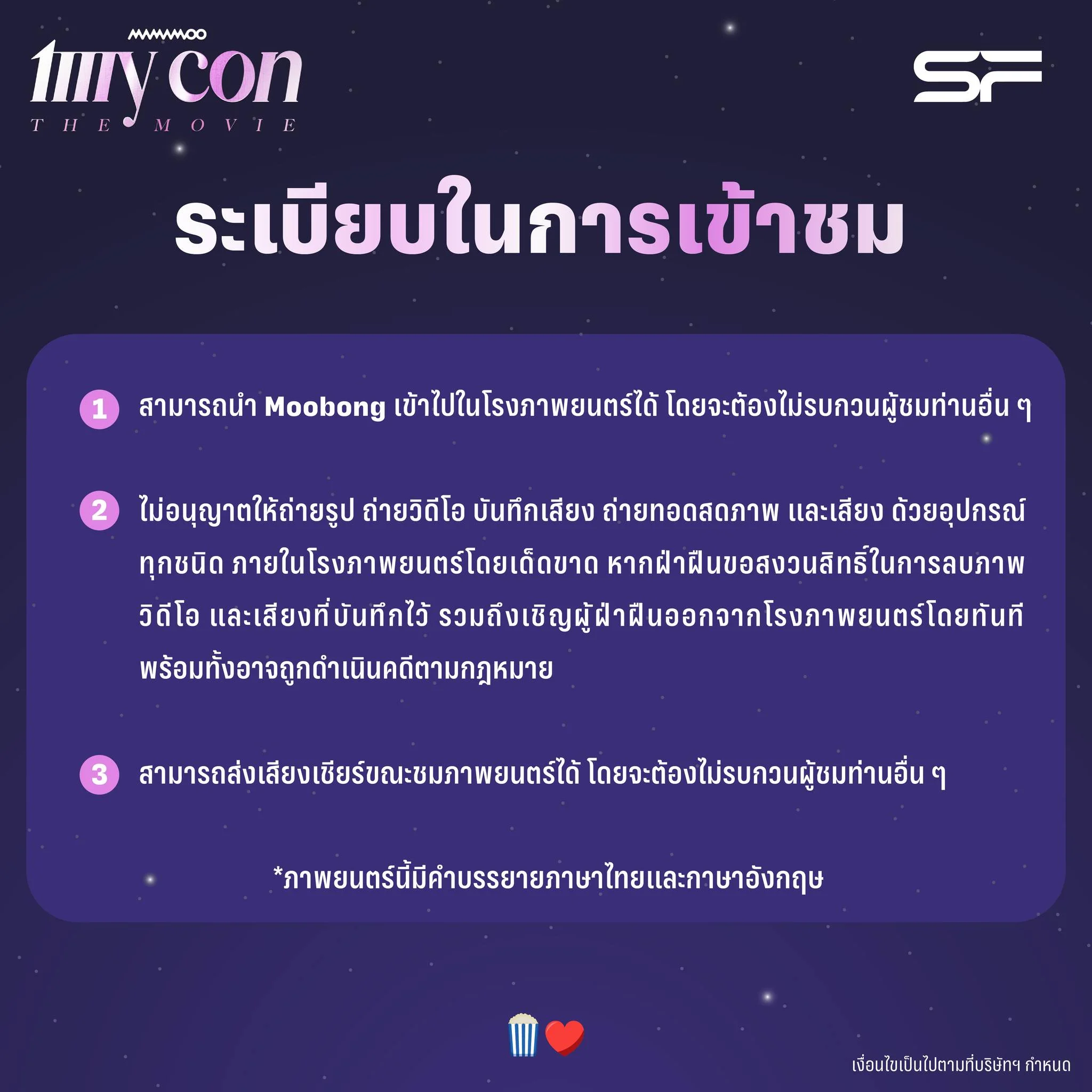 แอดขออนุญาตกรี๊ดออกมาดังๆ ลั่นปากซอยไปเลย วง MAMAMOO เกิร์ลกรุ๊ปสาวเสียงดี สุดแซ่บ อื้อหือออ แอดรีบไปกดบัตรแล้วตอนวันที่ 14 ก.ค. 66 รอรับชมกันได้ที่โรงภาพยนต์ ดูสาขาได้ตามรูปด้านล่างเลยเน้อ