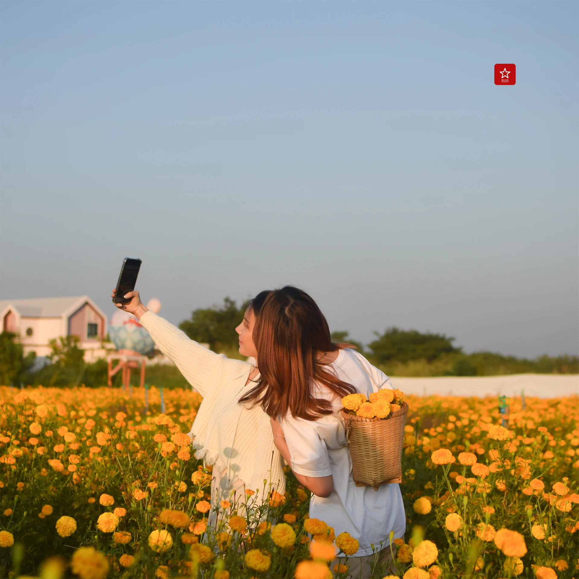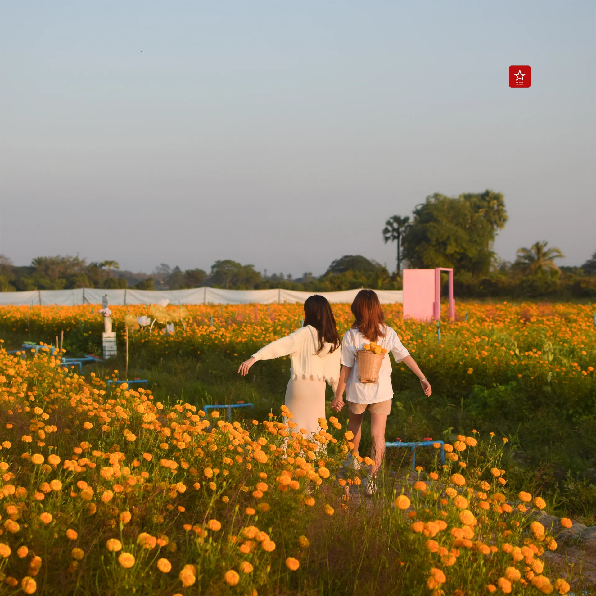 เดินถ่ายรูปเล่นกันเพลินๆ พร้อมกลิ่นหอมๆ ของดอกดาวเรืองไปด้วย