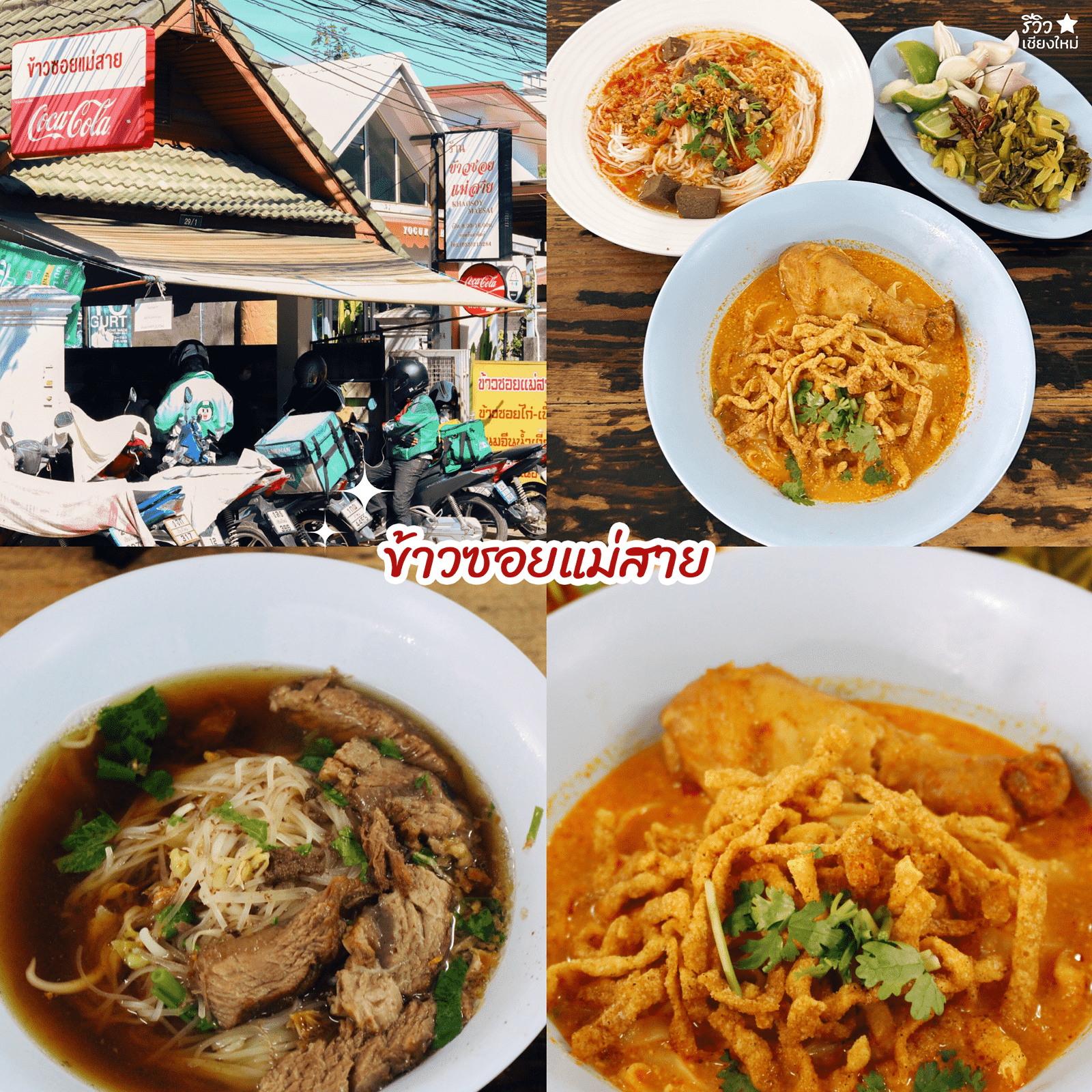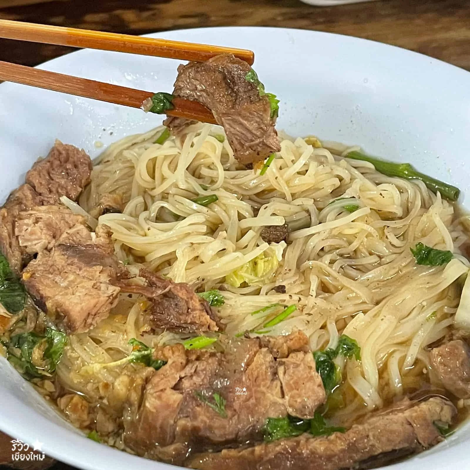 ร้านยอดฮิตอีกร้านที่คนเนืองแน่นอยู่ตลอด ข้าวซอยของร้านเค้าลำแต้ๆ จ้าว น้ำซุปเข้มข้น เครื่องมีให้เลือกทั้งหมู ไก่ เนื้อ แอดขอกระซิบกำว่าเนื้อที่นี่เค้ามาเป็นชิ้นสวยงาม นุ่มละมุนลิ้นแบบสุด ละลายในปาก เปื่อยได้ใจ นอกจากเมนูข้าวซอยแล้วก็ยังมี ขนมจีนน้ำเงี้ยว ก๋วยเตี๋ยวน้ำเงี้ยว และก๋วยเตี๋ยว ด้วยน้า