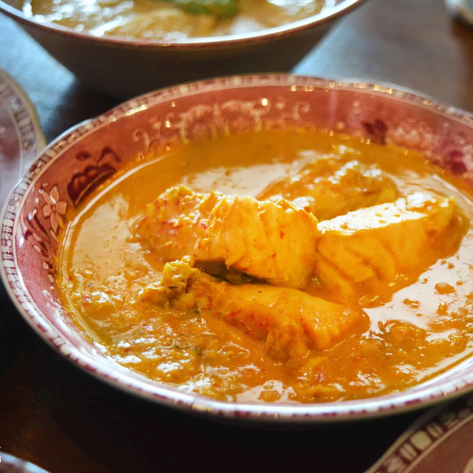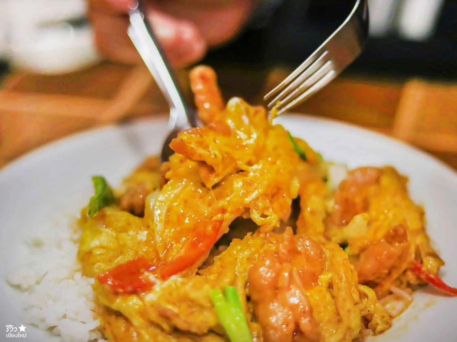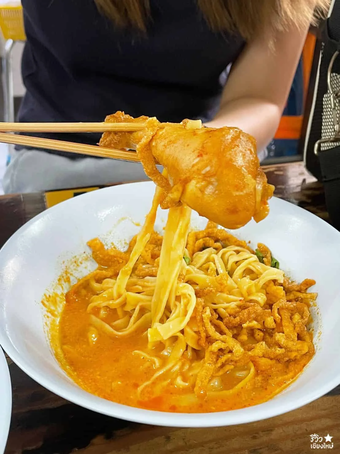 ร้านเด็ดอีกร้านที่เมนูแต่ละเมนูครีเอทจากความชอบของเจ้าของร้าน อาหารไม่มีผงชูรส เน้นคุณภาพและวัตถุดิบ แอดได้ลิ้มลองขนมจีนน้ำยาปลากระพงแดง คือเผ็ดอร่อยกำลังดีเลยจ้าว ปลามาแบบเนื้อแน่นๆ โรตีแกงฮังเลอันนี้ของมักขนาด ตักแกงฮังเลใส่บนโรตีกินคู่กับอาจาด คือดีย์ ตาลุกวาวเลยทีเดียว นอกจากนี้แอดขอบอกเลยว่าข้าวซอยเนื้อที่นี่ เนื้อนุ่มมากกก สายข้าวซอยต้องมาลองจ้าวว กินคาวเสร็จตบท้ายด้วยของหวานเป็นไอศกรีมข้าวหนุกงาที่บอกเลยว่าเข้มข้นหอมมัน