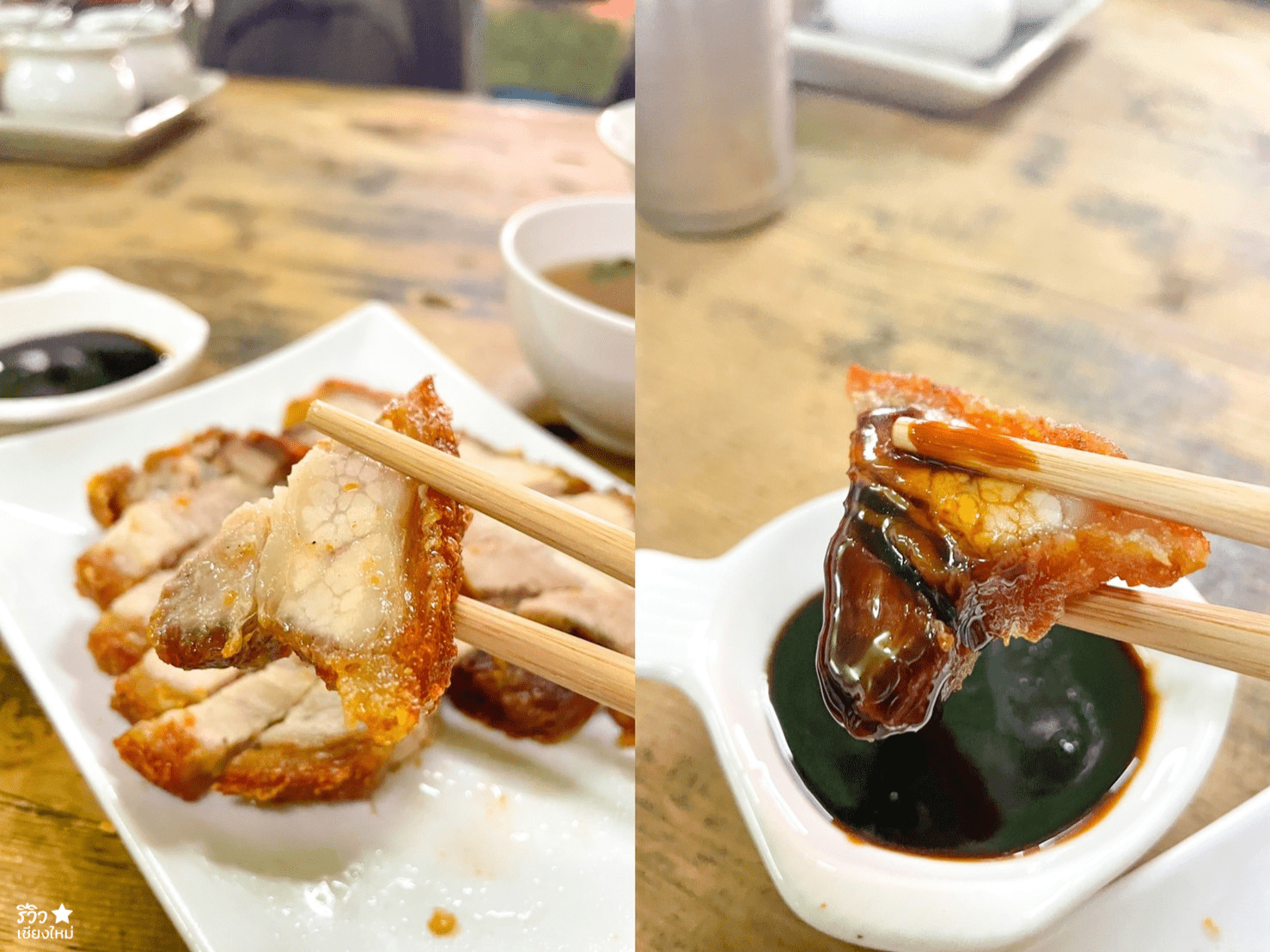 ร้านที่การันตีความอร่อยด้วยรางวัลมิชลิน 2020 – 2023 และจำนวนลูกค้าที่มาไม่ขาดสาย เมนูขึ้นชื่อก็คงไม่พ้นก๋วยจั๊บน้ำซุปกลมกล่อม อัดแน่นไปด้วยหมูกรอบและเครื่องใน มีไส้ซึ่งเป็นสูตรเฉพาะของทางร้าน นอกจากเมนูก๋วยจั๊บที่ขึ้นชื่อว่าไม่ควรพลาดแล้ว เค้าก็ยังมีเมนูเกาเหลา ก๋วยเตี๋ยวหลอด ปอเปี๊ยะสด และข้าวหมูกรอบที่อร่อยไม่แพ้กันเลย แอดขอบอกเลยว่าหมูกรอบที่นี่คือลำแต้ๆ จ้าว กรอบจริง!