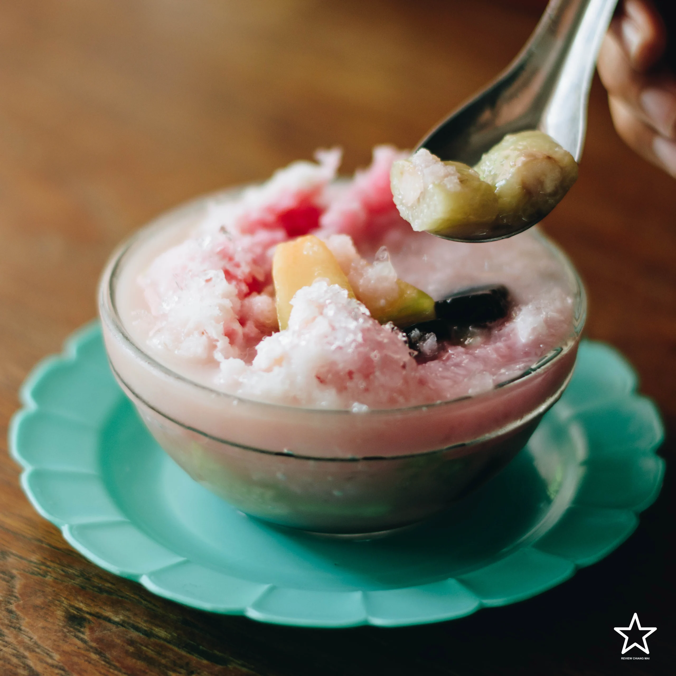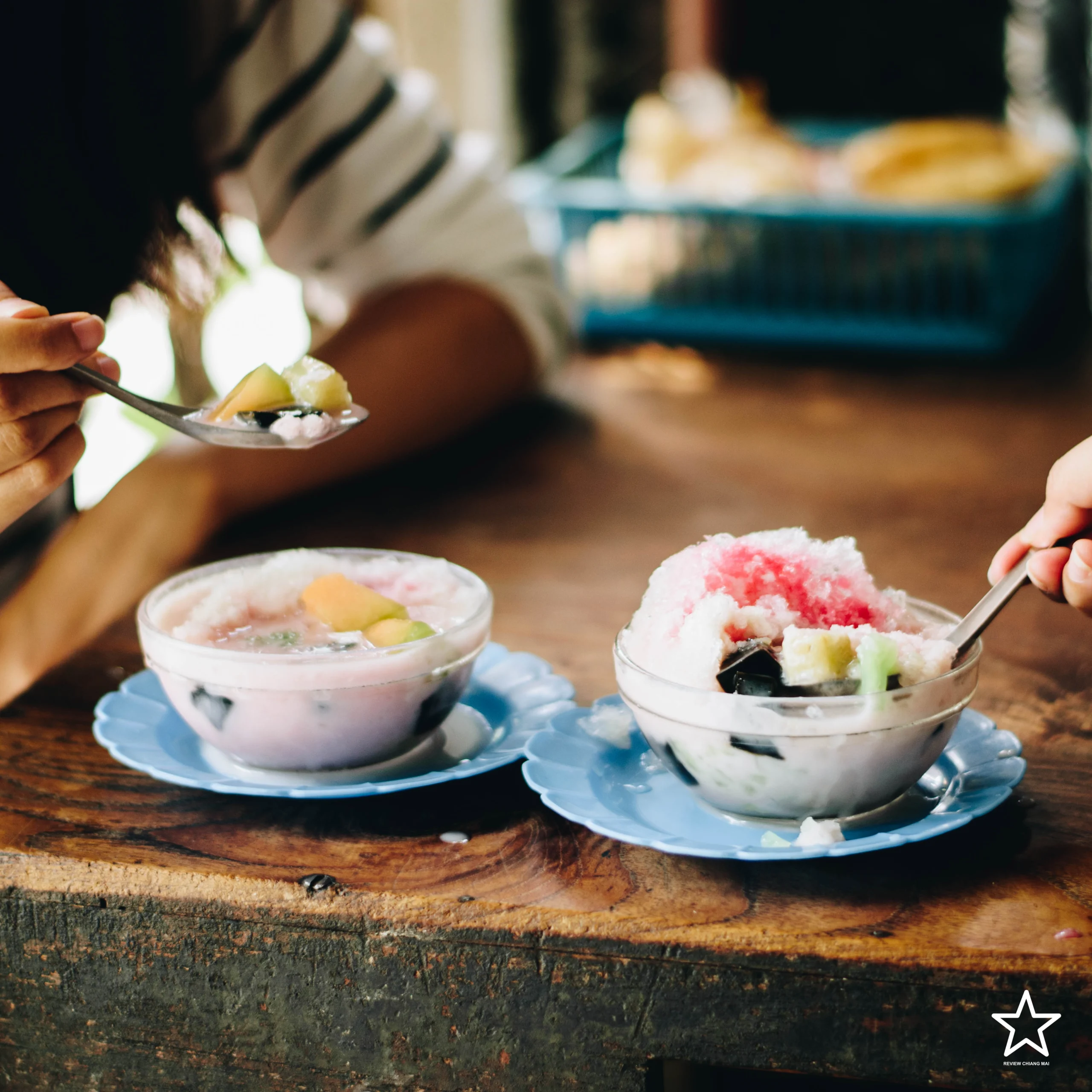 นอกจากน้ำเงี้ยวแล้วยังมีแกงเขียวหวานที่ขายแค่เสาร์-อาทิตย์เท่านั้น แต่ที่มีขายทุกวันก็คือออ น้ำแข็งไส!! เป็นน้ำแข็งไสที่ใช้เครื่องไสแบบโบราณ และที่สำคัญคุณลุงเป็นคนทำเครื่องไสเอง นอกจากเครื่องไสที่ไม่เหมือนใครแล้ว ยังมี! ข้าวต้มมัดชาววัง ที่ดัดแปลงมาจากข้าวต้มน้ำวุ้น ข้าวต้มมัดเหนียวหนึบ เข้ากับน้ำแข็งไสหวานเย็นฝุดๆ