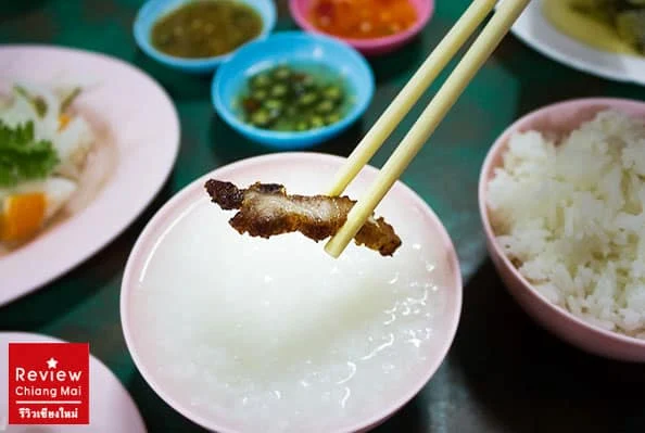 ข้าวต้มกุ๊ยอ่อน ๆ ทานกับแคบหมูที่ออกเค็มปะแล่มนิด ๆ เคี้ยวเพลิน ยิ่งถ้าอากาศเย็น ๆ หน่อยนะ ซดข้าวต้มคล่องคอกับเคี้ยว โดนแคบหมูกรุบ ๆ เผ็ดนิด ๆ หอม พริก กระเทียมแค่นี้ก็อร่อยเกินบรรยายแล้ว