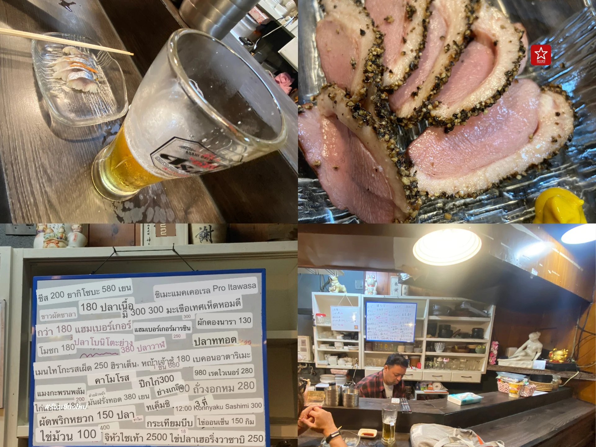 ร้านนี้คือจากสภาพไม่คิดว่าเป็นร้านนะ เหมือนที่เก็บของยังไงไม่รู้ เอาวะมันกล้าเปิดเราก็กล้าเข้า เขาก็คงงงว่าเราไปไงมาไงเนี่ย ร้านเล็กมาก สั่งไม่เป็นเอาเบียร์มากินก็ละกัน เมนูอาหารมีเยอะนะ เราก็สงสัยว่ามึงจะทำยังไงไม่เห็นมีที่ให้ทำเลย แต่ก็สั่งไปเขาก็ทำมาให้ได้นะ ยอมใจคนญี่ปุ่นกับที่แคบจริงๆ