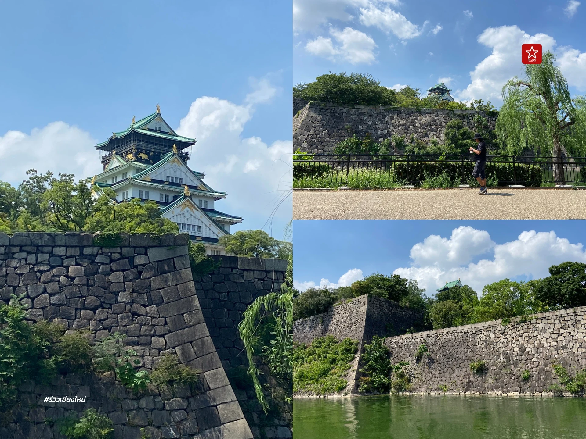 ปราสาทโอซาก้า สวยงาม ใหญ่โต เส้นทางเต็มไปด้วยต้นไม้ เป็นสวนขนาดใหญ่ เอาร่มมาด้วยจะดีมาก แดดแรงหน่อย แต่อากาศดีซึ่งอาจทำให้เราเดินชิวจนดำได้ คือเรายังเข้าที่พักไม่ได้ และปราสาทโอซาก้าก็อยู่ในเส้นทางไปที่พักพอดี ก็เลยแวะสักหน่อย ปรากฎว่า ร้อนมากๆๆ คือเราดันไปญี่ปุ่นตอนหน้าร้อนและเป็นช่วงเดือนที่ร้อนที่สุดคือ เดือนสิงหาคม โอ้โห แดดเชียงใหม่นี่หลบไปเลย เจอแดดโอซาก้าแบบเน้นๆ แต่มาแล้วทั้งที จัดไปด้วยการเดินสวนรอบปราสาท ก็สวยดีครับ แถมร้อนดีด้วย ถ้าใครขยันหน่อยก็เข้าไปชมในปราสาทได้ มีหลายชั้น เดินขึ้นลงก็เหนื่อยเอาเรื่องนิดหน่อย ปล. ถึงอากาศจะร้อนแต่คนญี่ปุ่นก็ยังมาเที่ยวกันเยอะมาก