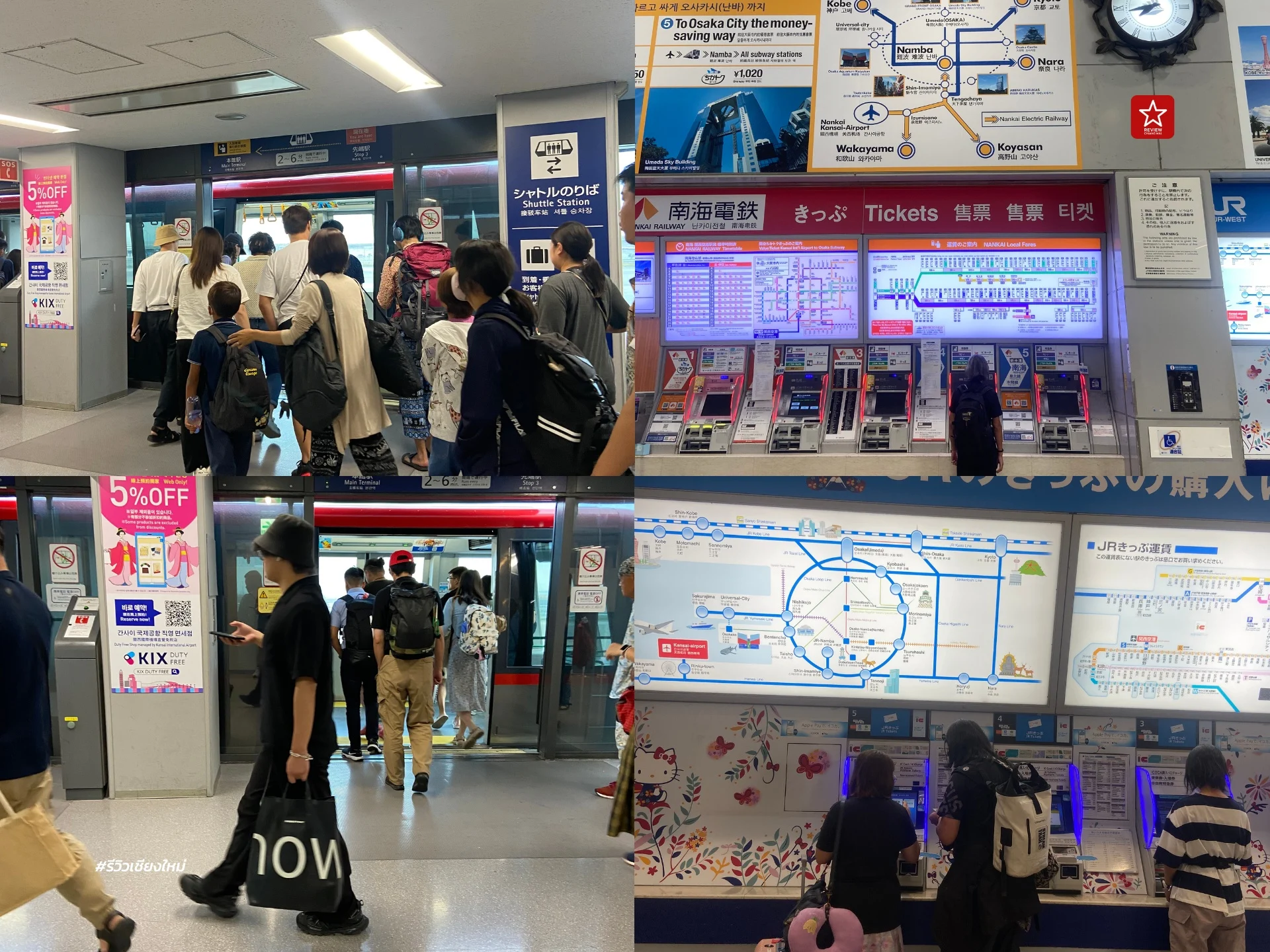 ลงเครื่องมาแล้วก็เดินตามคนอื่นมาเรื่อยๆ จะเจอจุดซื้อตั๋วรถไฟเข้าเมือง มันจะมีสองสายคือสีน้ำเงินกับสีแดง ก็ไปเลือกซื้อตั๋วตามที่วางแผนมา ของเราไปซื้อบัตร ICOCA แล้วเติมเงินเข้าไป ใช้จ่ายค่ารถไฟและค่าซื้อของตามร้านสะดวกซื้อได้ สะดวกมากๆ