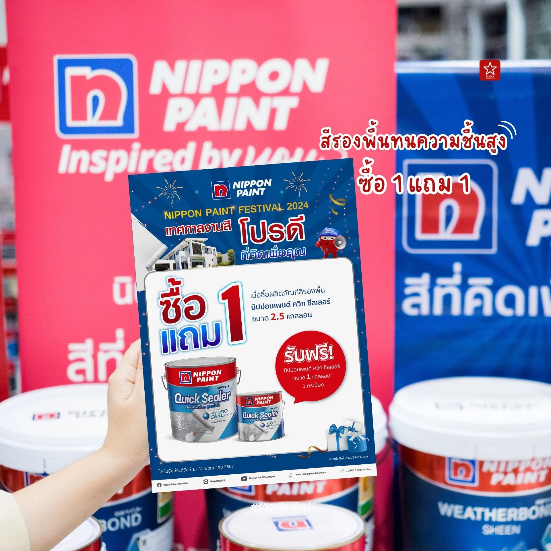 - เมื่อซื้อสีรองพื้นนิปปอนเพนต์ ควิก ซีลเลอร์ ขนาด 2.5 แกลลอน รับเลย นิปปอนเพนต์ ควิก ซีลเลอร์ ขนาด 1 แกลลอน 1 กระป๋อง