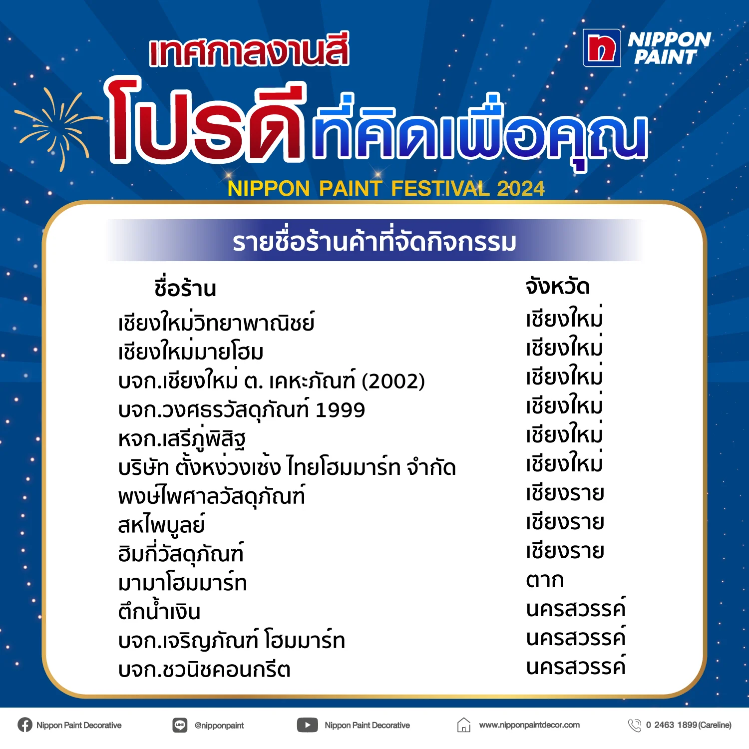 Nippon Paint Festival เทศกาลงานสี โปรดีที่คิดเพื่อคุณ – รีวิวเชียงใหม่พาชมโปรโมชั่นจัดหนัก!! เทศกาลงานรื่นเริงของหมู่คนฮักบ้าน Nippon Paint Festival จัดเต็มด้วยผลิตภัณฑ์คุณภาพจาก Nippon Paint ในราคาสบายกระเป๋า ปิดท้ายด้วยกิจกรรมภายในงาน กับของแถมมากมาย หื้อได้ขนกลับบ้านกั๋นแบบจุกๆ