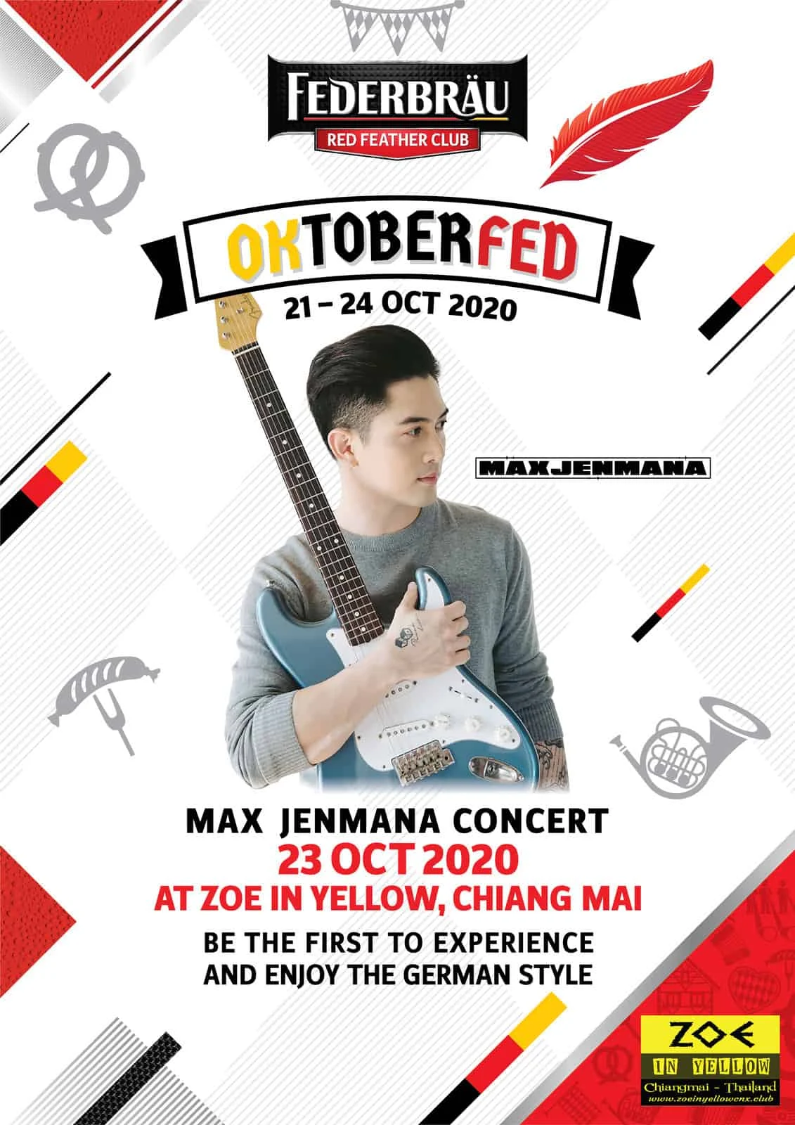 งานนี้เพื่อนๆจะได้พบกับ MAX JENMANA ที่พร้อมจะพาทุกคนสนุกไปกับเสียงเพลง เคล้าบรรยากาศ และเครื่องดื่มสุดสมูธ ที่เข้ากันได้ดีกับเทศกาล Oktoberfest แบบจัดเต็ม ในวันที่ 23 ตุลาคมนี้