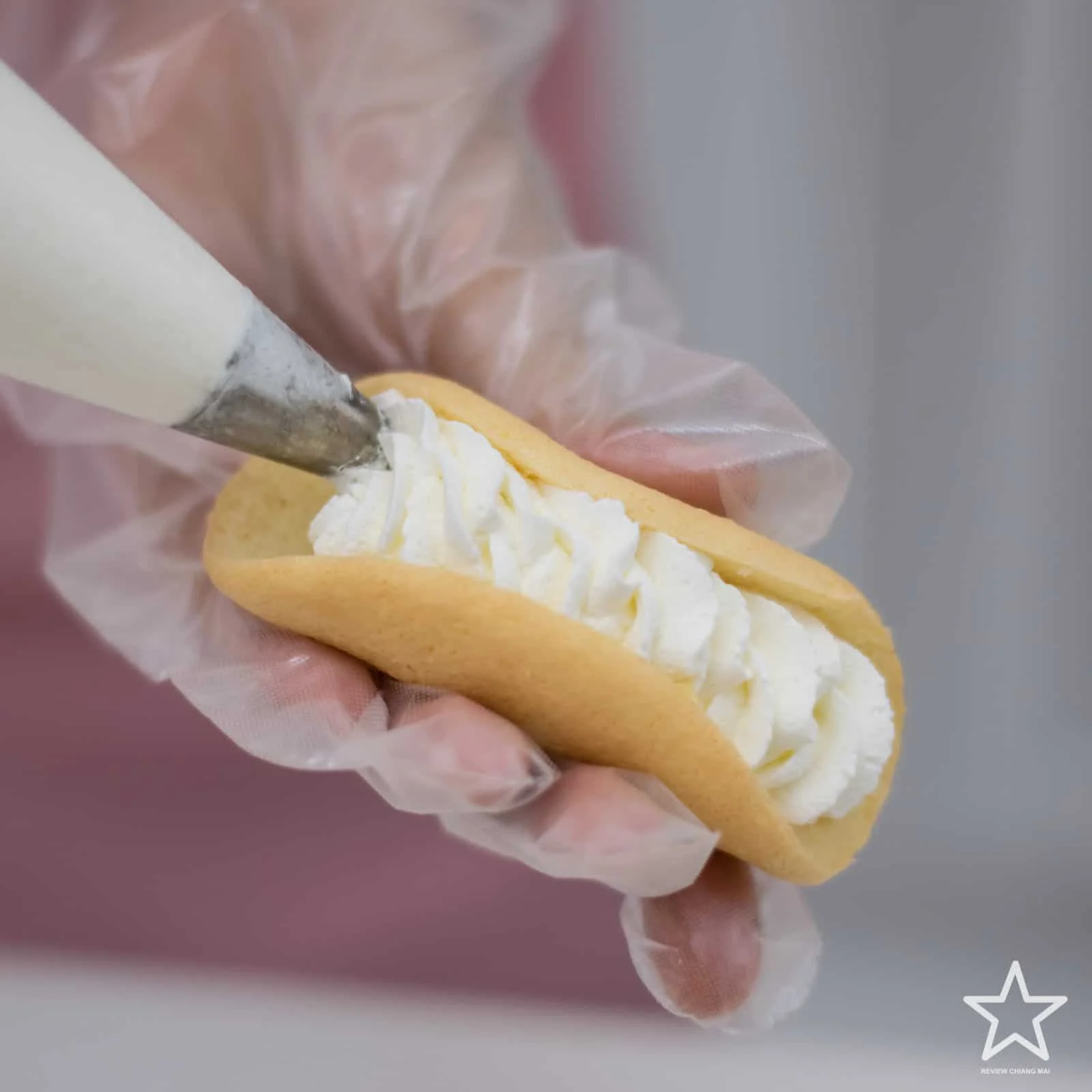 Omelet Bread ที่แอดพามากินนี้ ทุกวัตถุดิบในการทำแป้งนั้นถูกคัดมาให้เป็นวัตถุดิบแบบ Low Calorie แต่ถึงอย่างนั้นก็ยังให้รสชาติหวานที่นุ่มนวล ในส่วนของตัววิปครีมก็ทำมาจากโยเกิร์ตไขมัน 0 % แอดว่าถ้าสาวๆได้กินต้องฟินแน่นอน