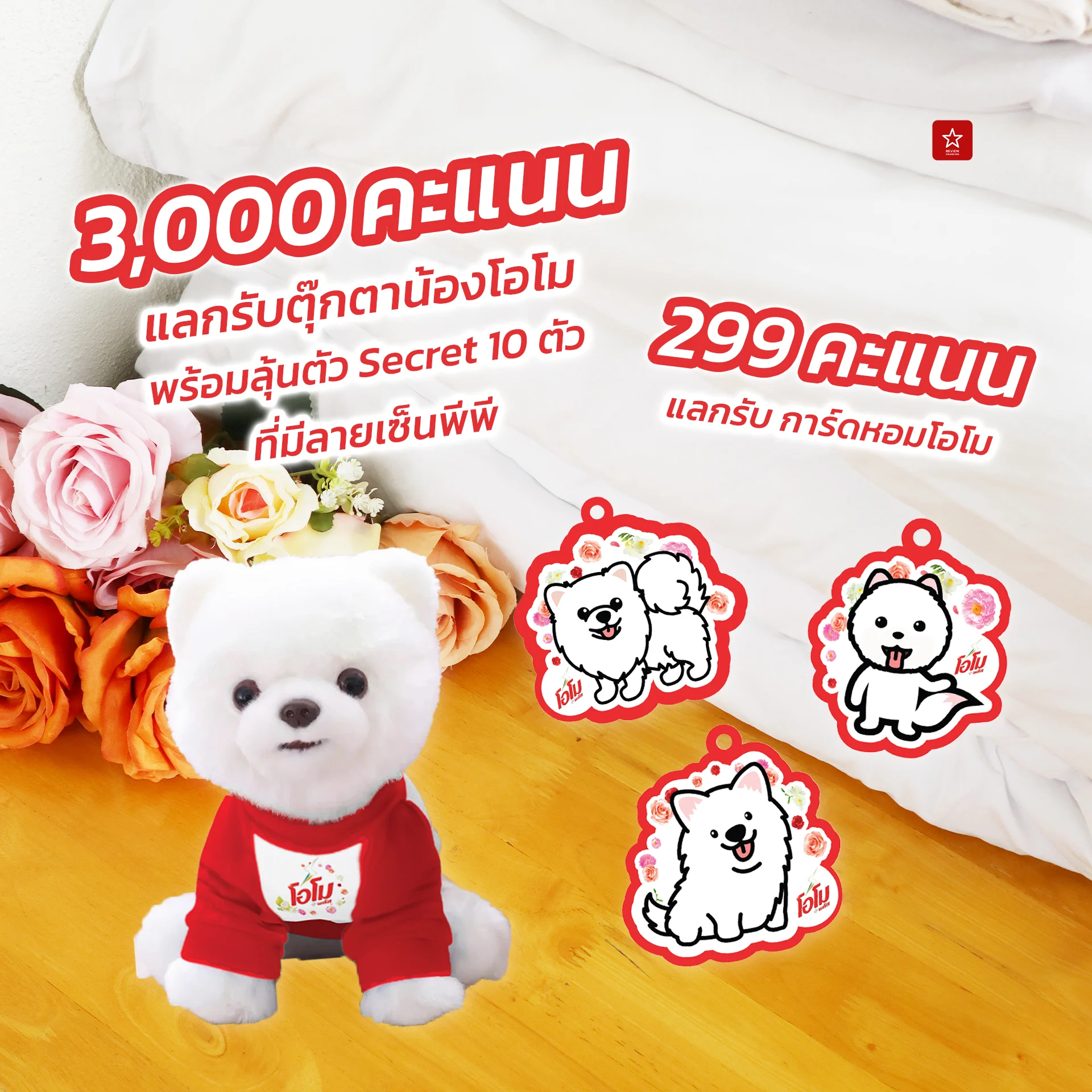 3,000 คะเเนน แลกรับ ตุ๊กตาน้องโอโม (พร้อมลุ้นตัว secret 10 ตัวที่มีลายเซ็นพีพี)