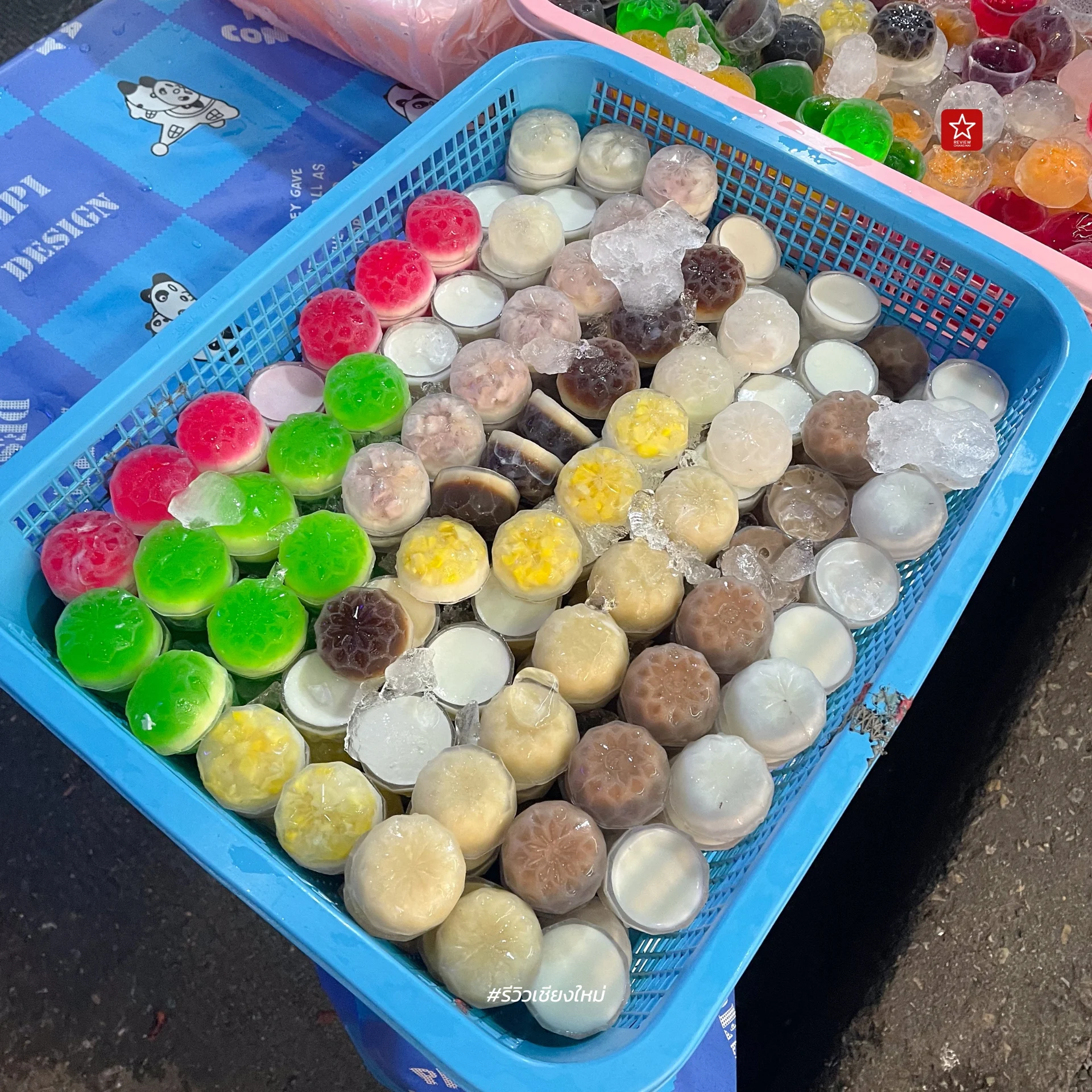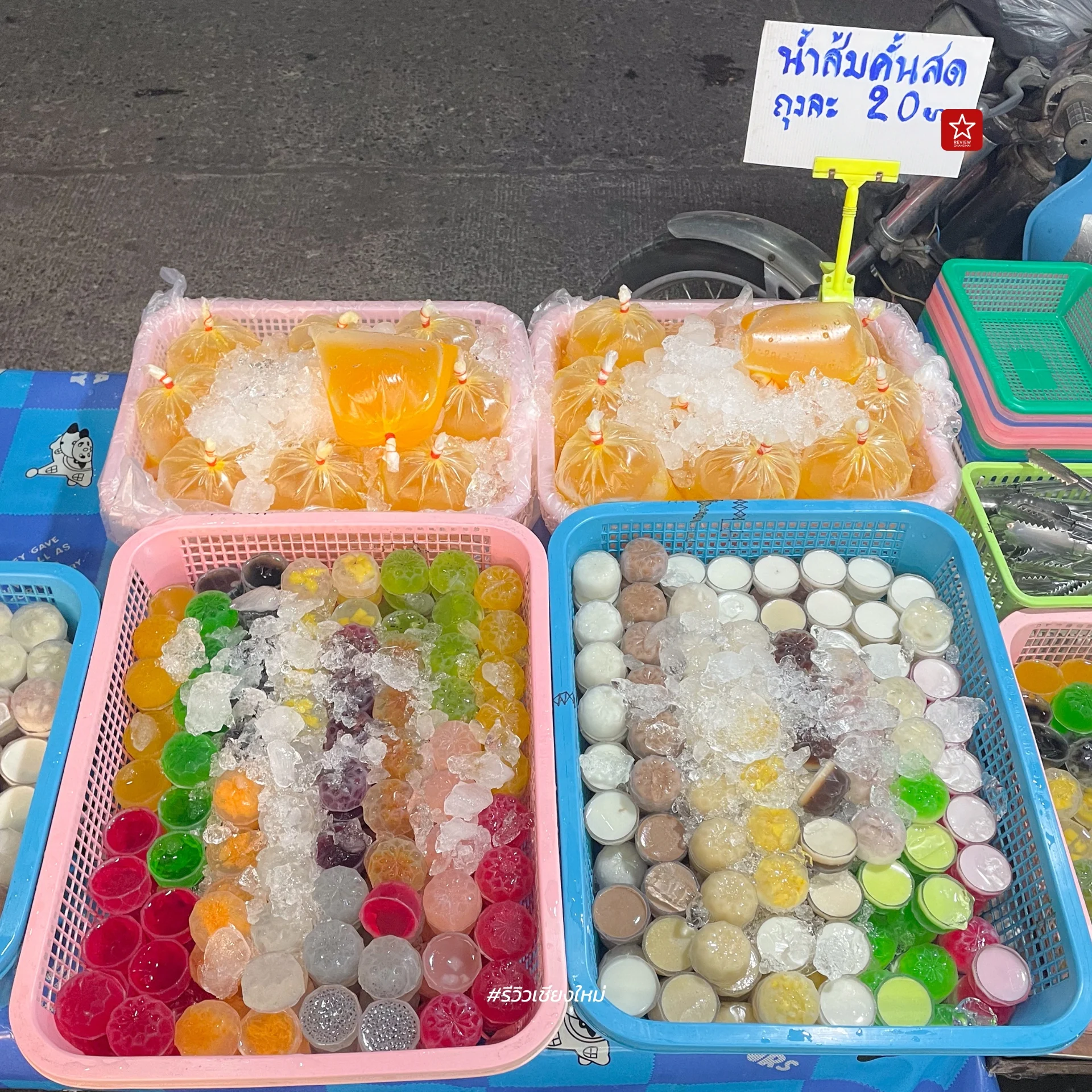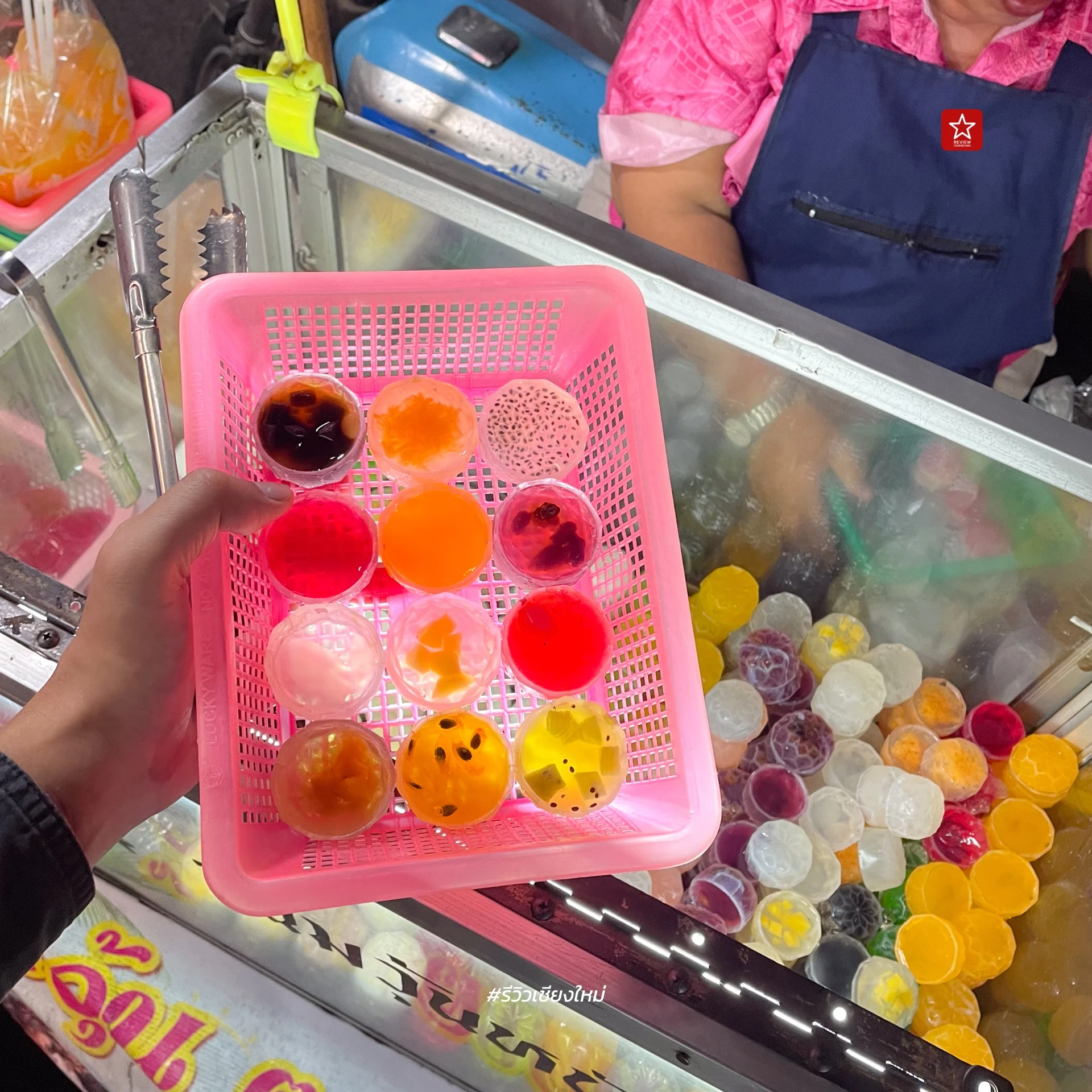 โดยซึ่งวุ้นทั้ง 24 เมนู ป้าเค้าทำเอง ชิมเอง คิดสูตรเองหมด ส่วนเมนูที่ขายดีที่สุดคือ วุ้นกะทิกับวุ้นมะพร้าว ป้าบอกว่า วุ้นพวกนี้เก็บไว้หลายวันไม่ได้นะ เพราะว่าไม่ได้ใส่สารกันเสีย อย่างวันนี้ป้าเค้าเตรียมวุ้นมาขาย 3,000 กว่าถ้วย พอดึกๆ แบบนี้ก็จะเริ่มเหลือน้อยลง แล้ววันนี้ก็มีน้ำส้มคั้นด้วยนะ 100% มีมาขายไม่เยอะ ใครดีใครได้ของแบบนี้