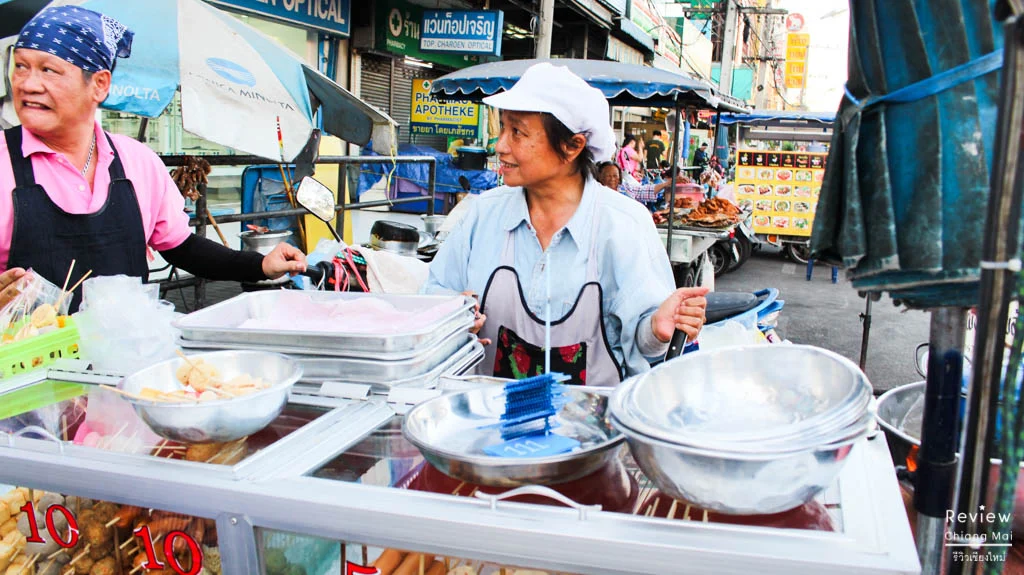 ราคามีตั้งแต่ไม้ละ 5 บาท จนถึง 17 บาท มีหลายอย่าง ไส้กรอกชีส ไก่จ๊อ ปูอัด ชิกุวะ เต้าหู้ปลา มีเกี๊ยวทอด ราคาไม้ละ 5 บาท และมีลูกชิ้นทอดรวมด้วยจ้า มีลูกชิ้นปลา หมู เนื้อ ไส้กรอก