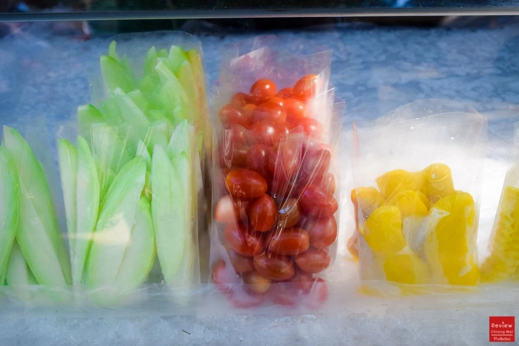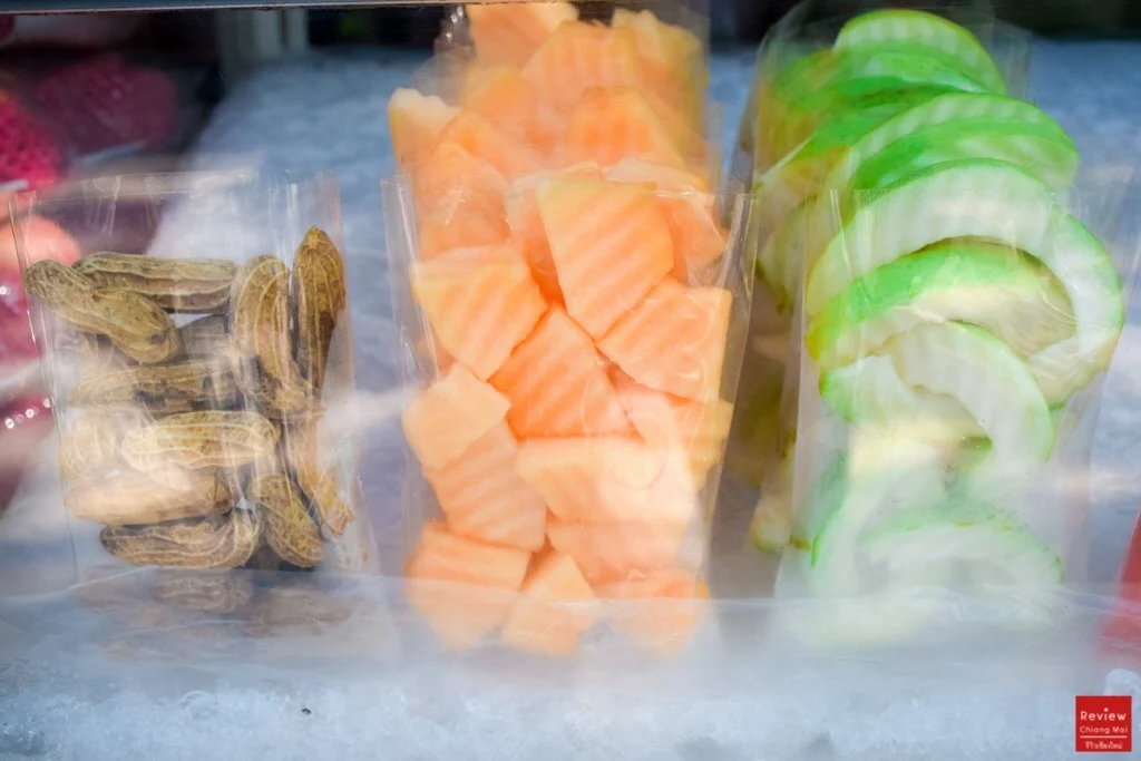 ตัวร้านเป็นร้านขายผลไม้เล็กๆ ติดริมถนนครับ ผลไม้ก็มีหลากหลายกว่า 20 อย่าง เช่น ฝรั่ง สับปะรด มะม่วง แคนตาลูป แตงโม ผมไม้ดอง ผลัดเปลี่ยนกันมาตามฤดูกาล ผลไม้ส่งตรงจากตลาดเมืองใหม่ พี่ๆ เขาไปคัดเองทุกเช้าเลยฮะ รับรองว่าสดใหม่แน่นอน ส่วนราคาก็แสนถูก แค่ “ถุงละ 10 บาท” ทุกอย่างเลย