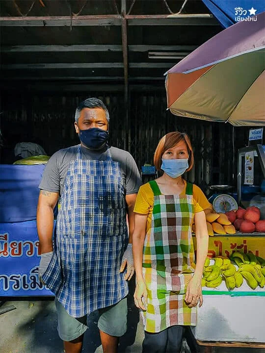 เจ้าของร้านคือ พี่กี้กับพี่อ้อ (ใครที่อยากฟังความน่ารักของพี่อ้อกับพี่กี้ เข้าไปดูบทสัมภาษณ์ได้ที่ คนหยัง? เปิดชีวิตพี่อ้อ ผลไม้สด เชียงใหม่) เป็นแฟนกัน เปิดร้านมานานแล้ว
