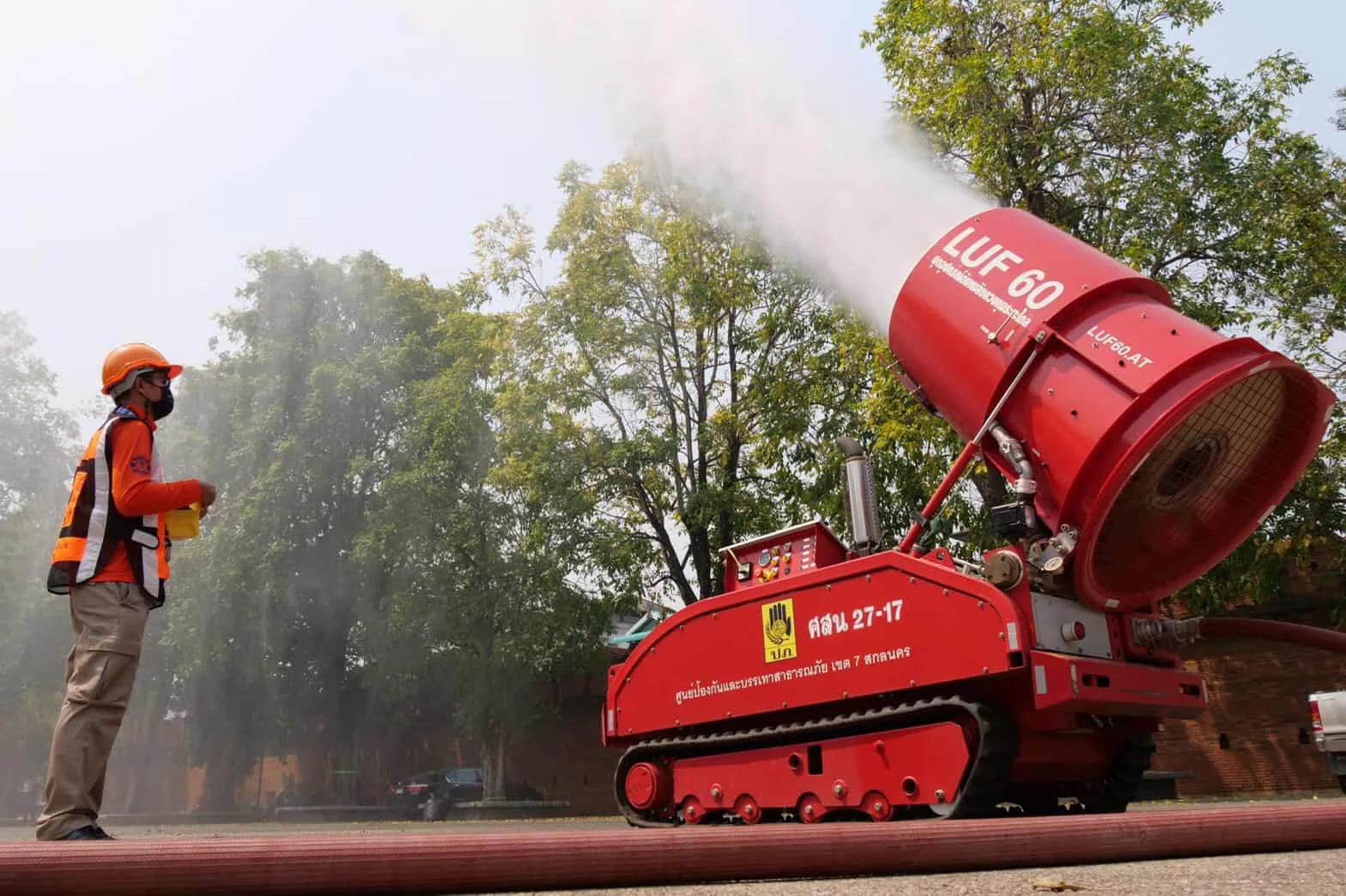 ปัญหาหมอกควัน หน่วยงานเกี่ยวข้องในเชียงใหม่ เร่งดำเนินการแก้ไข ปัญหาหมอกควัน เกินค่ามาตรฐานในเชียงใหม่ ปภ.จับมือ มทร.ล้านนา ทดลองพ่นน้ำไมโครนาโน พบจับอนุภาคฝุ่นลดพีเอ็ม 2.5 ได้ถึง 50 เปอร์เซ็นต์ ด้านกลุ่ม “เซฟเชียงใหม่” ออกแจกหน้ากาก N95 1,000 ชิ้น ให้กับประชาชน วอนรัฐช่วยมาสนับสนุนหน้ากากให้ประชาชน