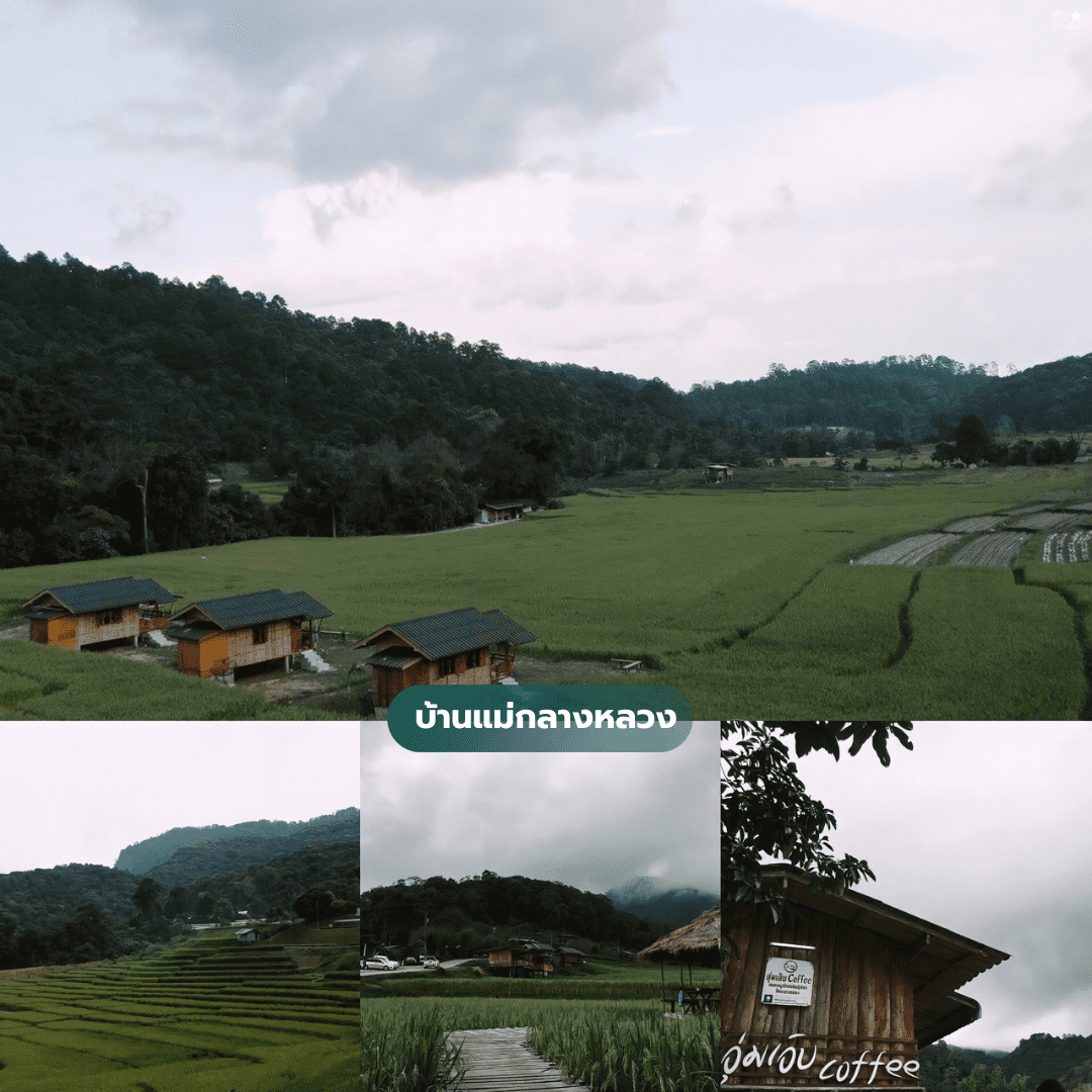 บ้านแม่กลางหลวง ชุมชนเล็กๆ มีนาขั้นบันได บรรยากาศดีมาก อยู่ทางขึ้นดอยอินทนนท์ มีโฮมสเตย์จำนวนหนึ่ง รีบมาก่อนเกี่ยวข้าว มีทั้งร้านกาแฟ วิวสวยๆ ให้แวะเที่ยวกัน เป็นนาขั้นบันไดอีกแห่งหนึ่งที่สวยไม่แพ้ที่อื่นเลยจ้าววว