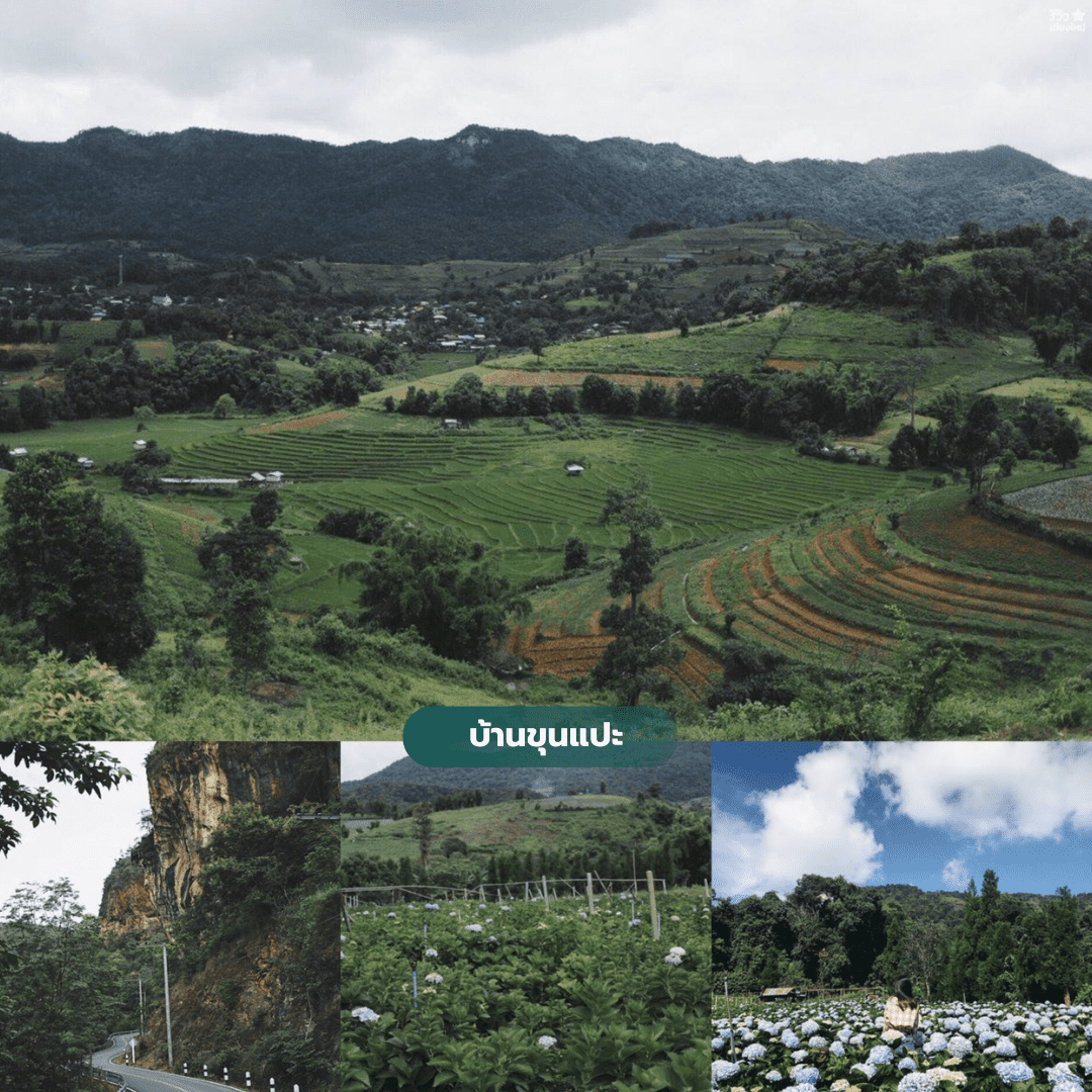 ช่วงปลายฝนต้นหนาวเป็นช่วงที่สวยมากๆ ของบ้านขุนแปะ ถึงแม้ในช่วงต้นฝนดอกไฮเดรนเยียจะยังบานไม่เต็มที่ แต่ก็ยังมีธรรมชาติอื่นๆ ที่สวยไม่แพ้กันให้เราได้สัมผัสกันอย่างแน่นอน ทั้งวิวป่า วิวภูเขา รับรองว่าเติมอิ่มกับธรรมชาติแน่นอน