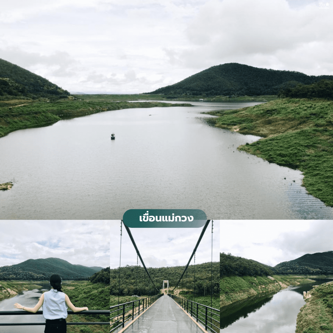 ช่วงหน้าฝนเขื่อนก็คงเต็มน้ำแล้วว วิวภูเขา ตัดกับผืนน้ำ ช่วงที่แนะนำจะเป็นช่วงก่อนพระอาทิตย์ตก ลมเย็นๆ ช่วงหน้าฝน คงเป็นอะไรที่ฟินมาก ไปถ่ายรูปตรงสะพานแขวน สไตล์คนเก๋ๆ แบบเราๆ
