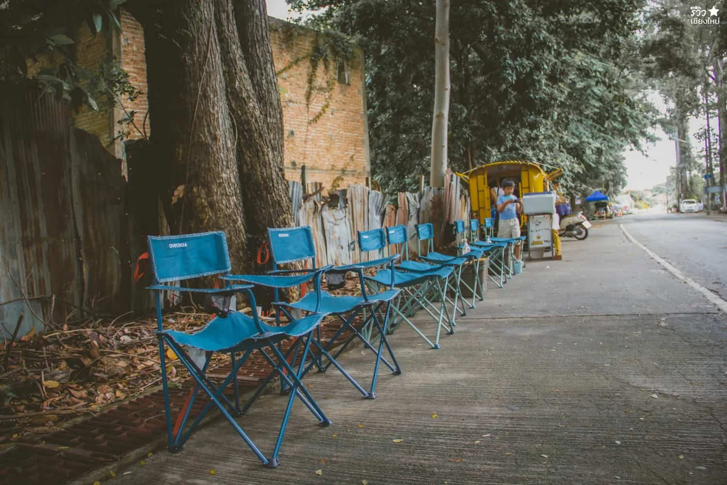 บรรยากาศรอบ ๆ ร้านก็คือดีมาก มีร่มเงาจากต้นไม้ใหญ่ ทำให้อากาสไม่ร้อน และมีที่นั่งรอกาออดเดอร์เป็นเก้าอี้แคมป์เน้อจ้าว เหมาะกับการถ่ายรูปมาก ๆ