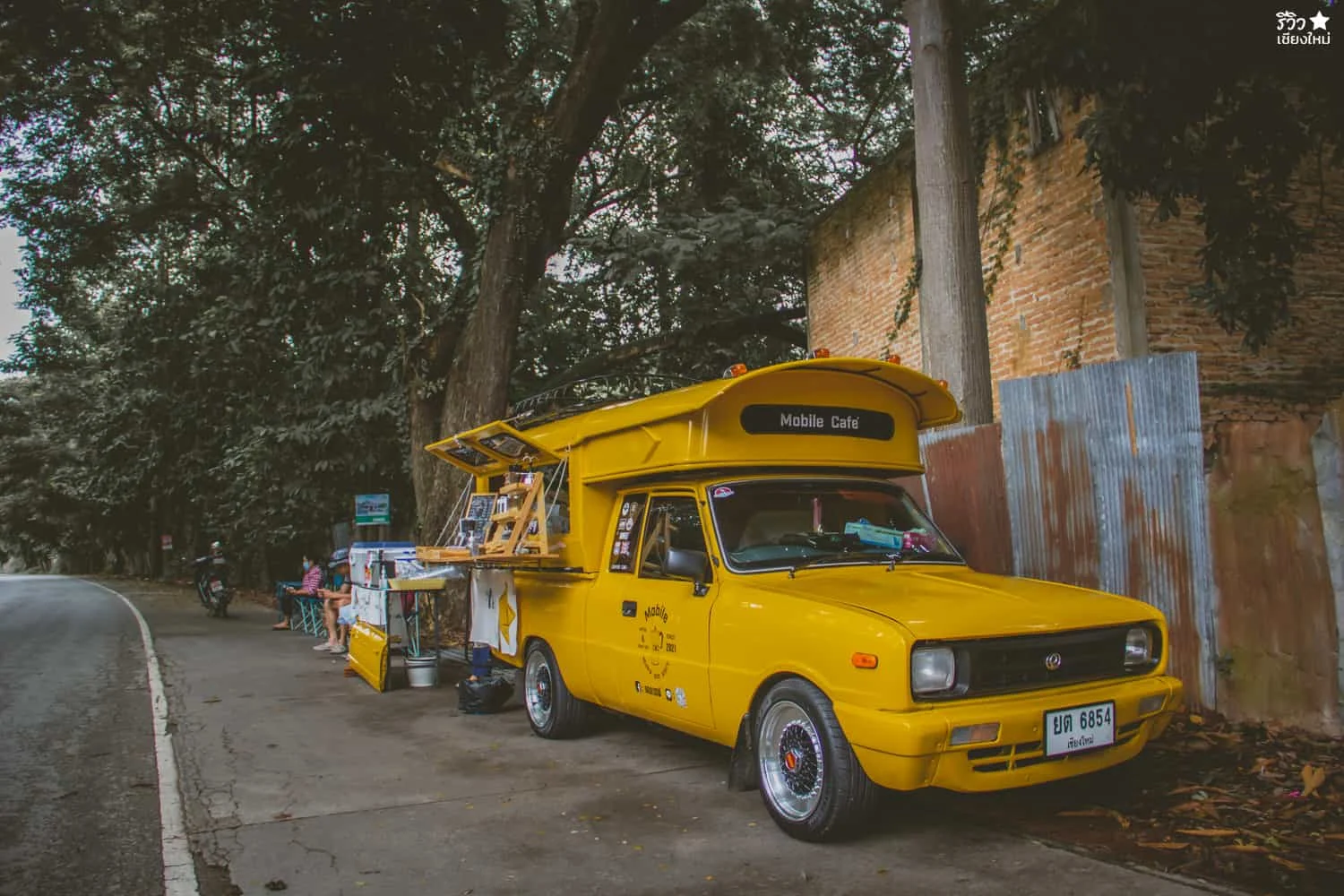 ด้วยลักษณะภายนอกที่โดดเด่น และสะดุดตา จากรูปลักษณ์รถสองแถวรับส่งผู้โดยสารประจำทาง อ.ดอยสะเก็ด ที่ถูกนำมาเป็นต้นแบบกลายเป็นร้านกาแฟ ข้างทาง และเจ้าของร้านก็น่ารักมาก เป็นร้านที่เพิ่งเปิดได้ประมาณเดือนเศษ ๆ เนื่องจากประสบปัญหาโรคระบาดในตอนนี้ จึงผันตัวเปลี่ยนอาชีพมาเรื่อย ๆ และมาลงเอยด้วยการเปิดร้าน รถกาแฟ Mobile Café จนทำให้กลายเป็นจุดเช็กอินยามเช้าของผู้คนที่ดอยสะเก็ด ซึ่งกำลังฮิตมากในตอนนี้เลย