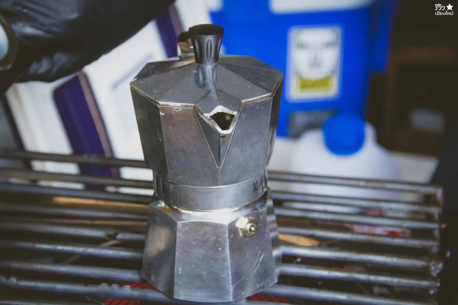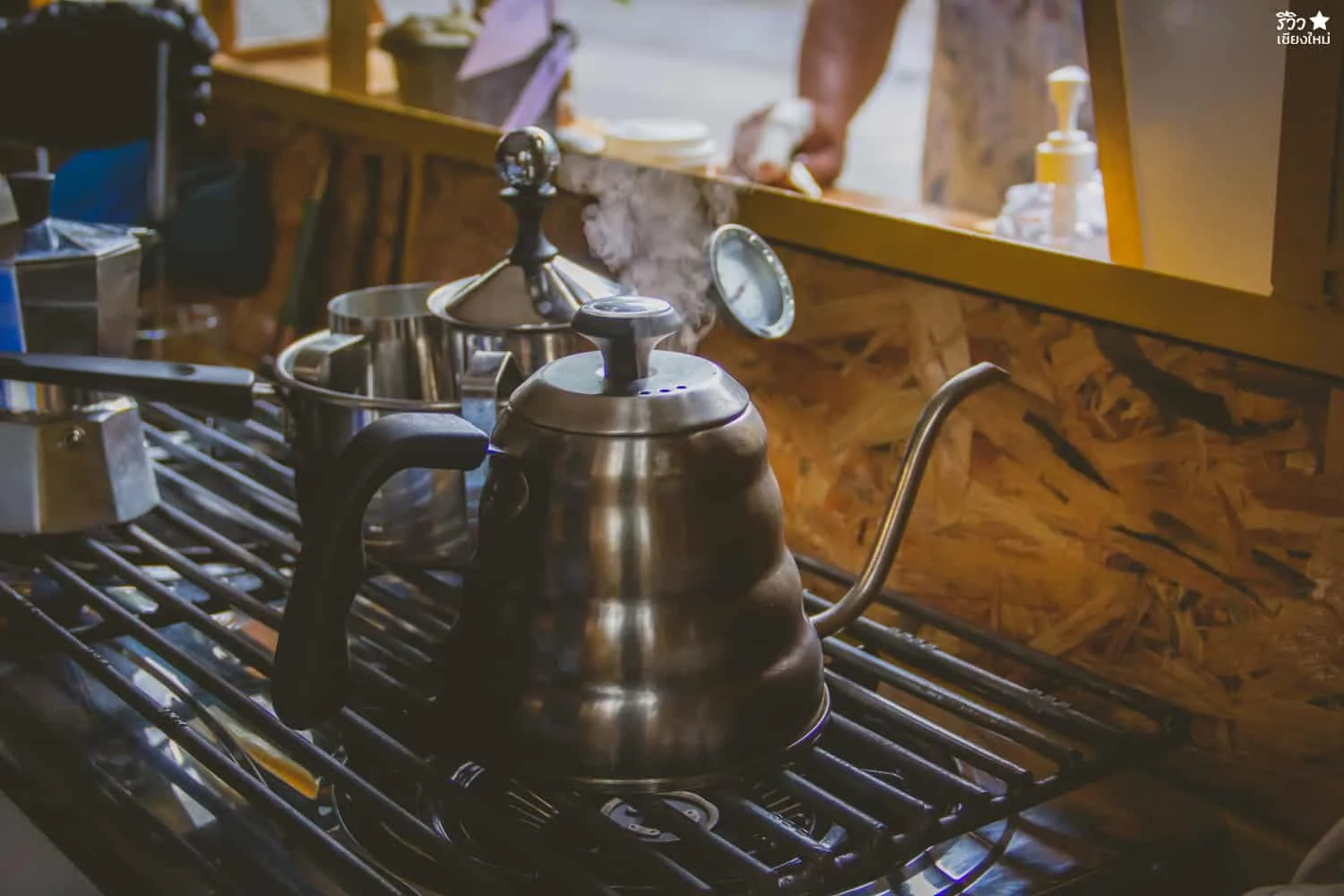 แอดขอบอกก่อนเน้อ ที่ร้านขายเป็นกาแฟแบบ Moka Pot ซึ่งเป็นการชงกาแฟแบบต้มน้ำให้ร้อน แล้วอาศัยแรงดันน้ำในการสกัดกาแฟ ทำให้ได้รสชาติของกาแฟที่มีรสเข้มไปถึงขม ดื่มช่วงเช้า ๆ สักแก้วบอกเลยว่าตื่นแน่นอนจ้า