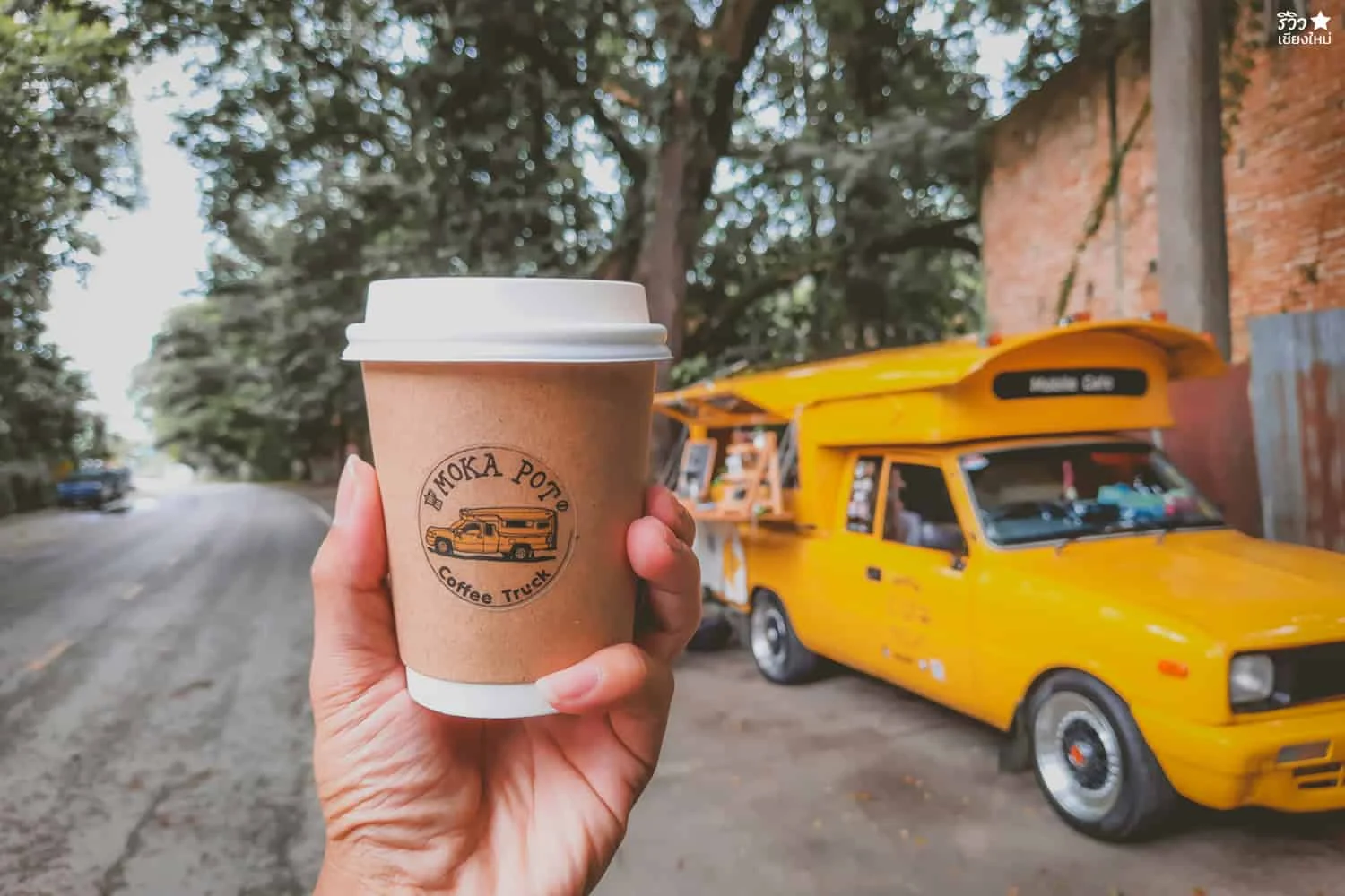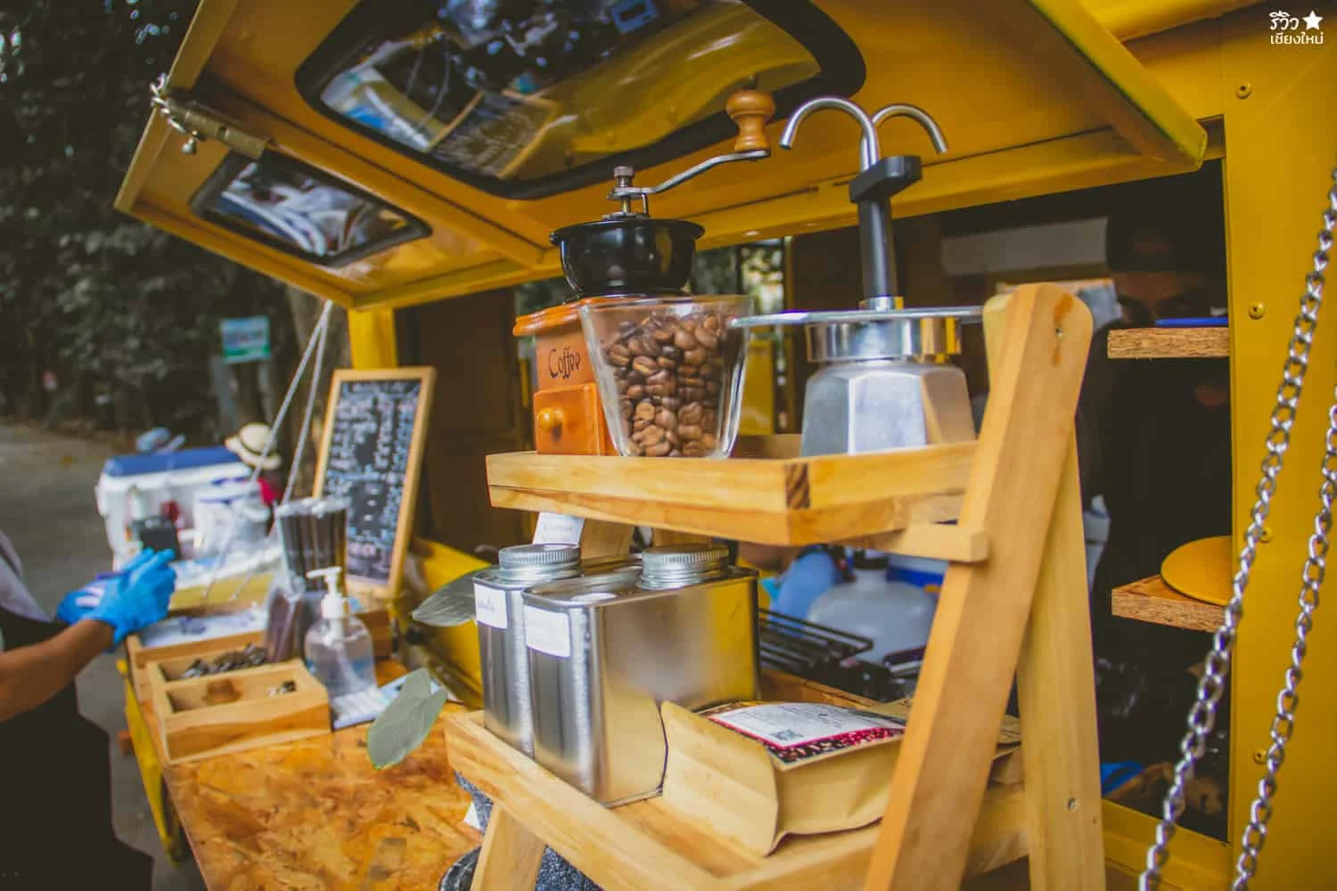 จากรถเหลืองสองแถวประจำทางเชียงใหม่ – ดอยสะเก็ด สู่ต้นแบบร้านกาแฟสุดน่ารัก “รถกาแฟ Mobile Cafe” ที่เปิดขายมาประมาณเดือนเศษ ๆ และได้หาทำเลที่ตั้งขายมาเรื่อย ๆ จนมาลงเอย ขายที่ข้างสนามกีฬาเทศบาลตำบลดอยสะเก็ดจ้า
