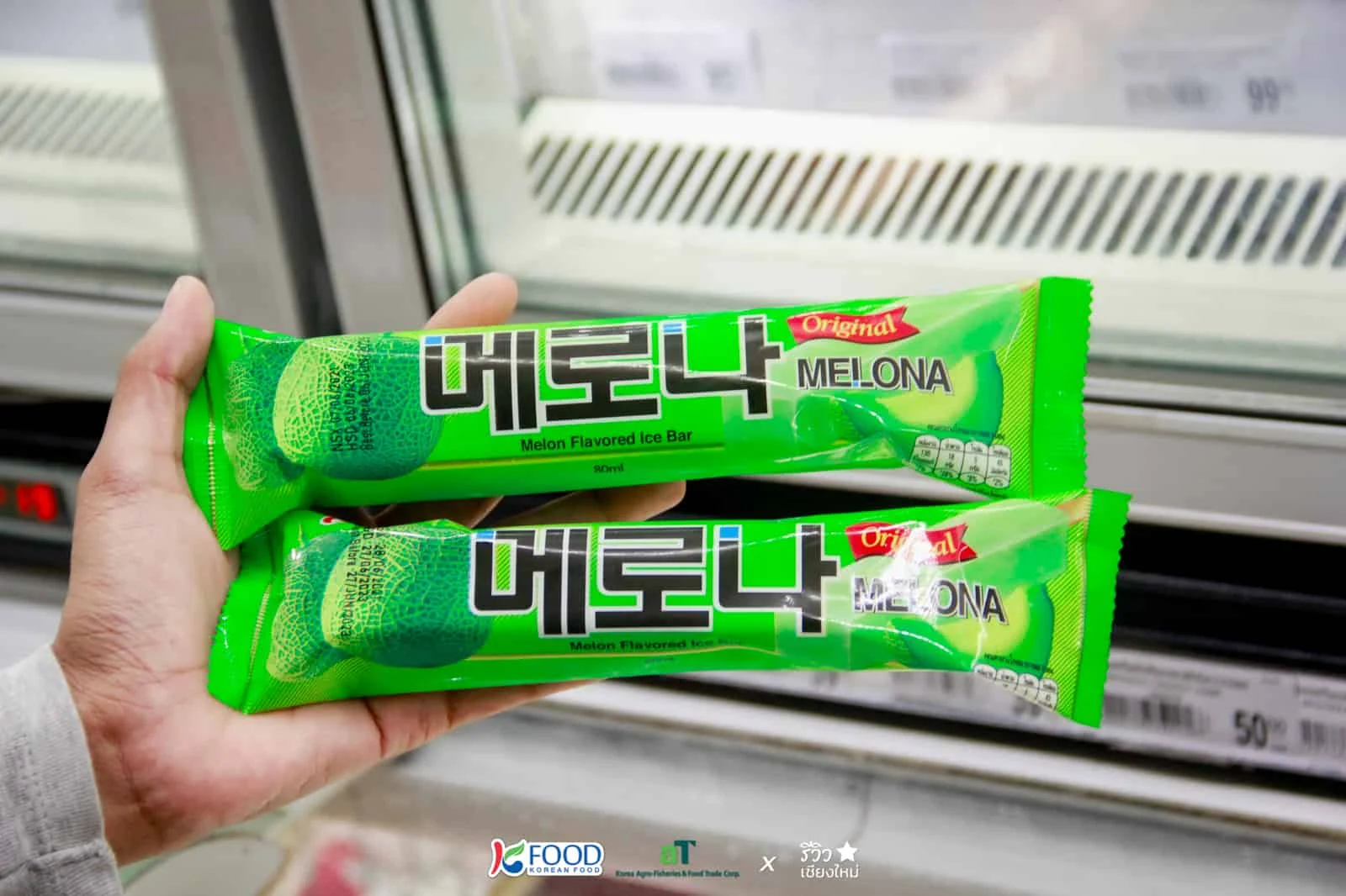 บิงเกร ไอศกรีมเมโลน่า รสเมลอน เป็นไอศกรีมยอดฮิตในเกาหลี ที่ขายมายาวนานกว่า 20 ปี ตัวไอศกรีมมีสีเขียว ทรงเหลี่ยมเป็นเอกลักษณ์ พร้อมรสสัมผัสที่ครีมมี่เนียนนุ่มด้วยส่วนผสมจากนมแท้ๆ