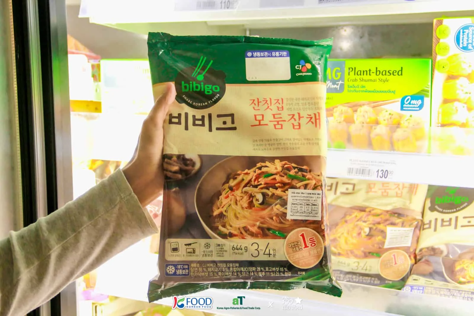 บิบิโก สเทอร์ ไฟรด์ วีจี พอร์ค จัพแช ผัดวุ้นเส้นเกาหลี ในซองจะมีผัก วุ้นเส้น และเนื้อหมูพร้อมทานเพียงนำไปผัดในกระทะก็จะได้รสชาติสไตล์เกาหลีแท้ๆ