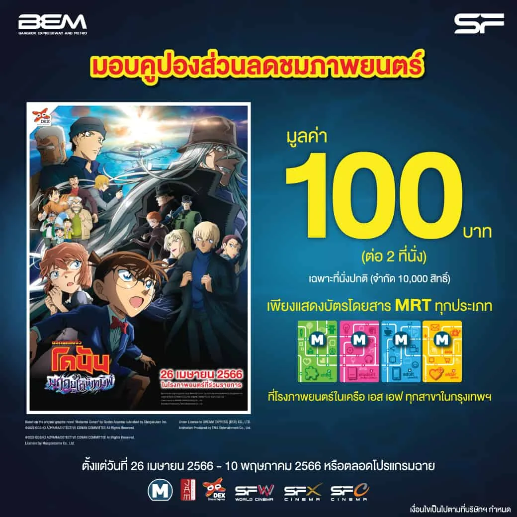 13 เม.ย. 66 – 17 พ.ค. 66 ( หรือจนกว่าของจะหมด ) ดูรายละเอียดคลิ๊กเลยยย! ยอดนักสืบจิ๋วโคนัน เดอะมูฟวี่ลำดับที่ 26 : มฤตยูใต้น้ำทมิฬ! ฉายแล้ววันนี้ ที่ SF