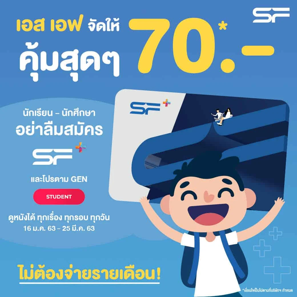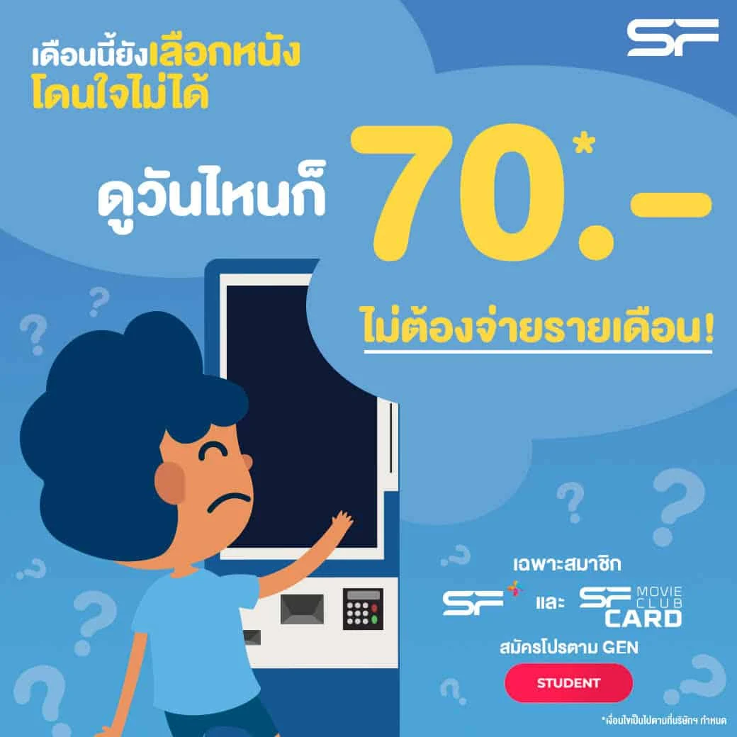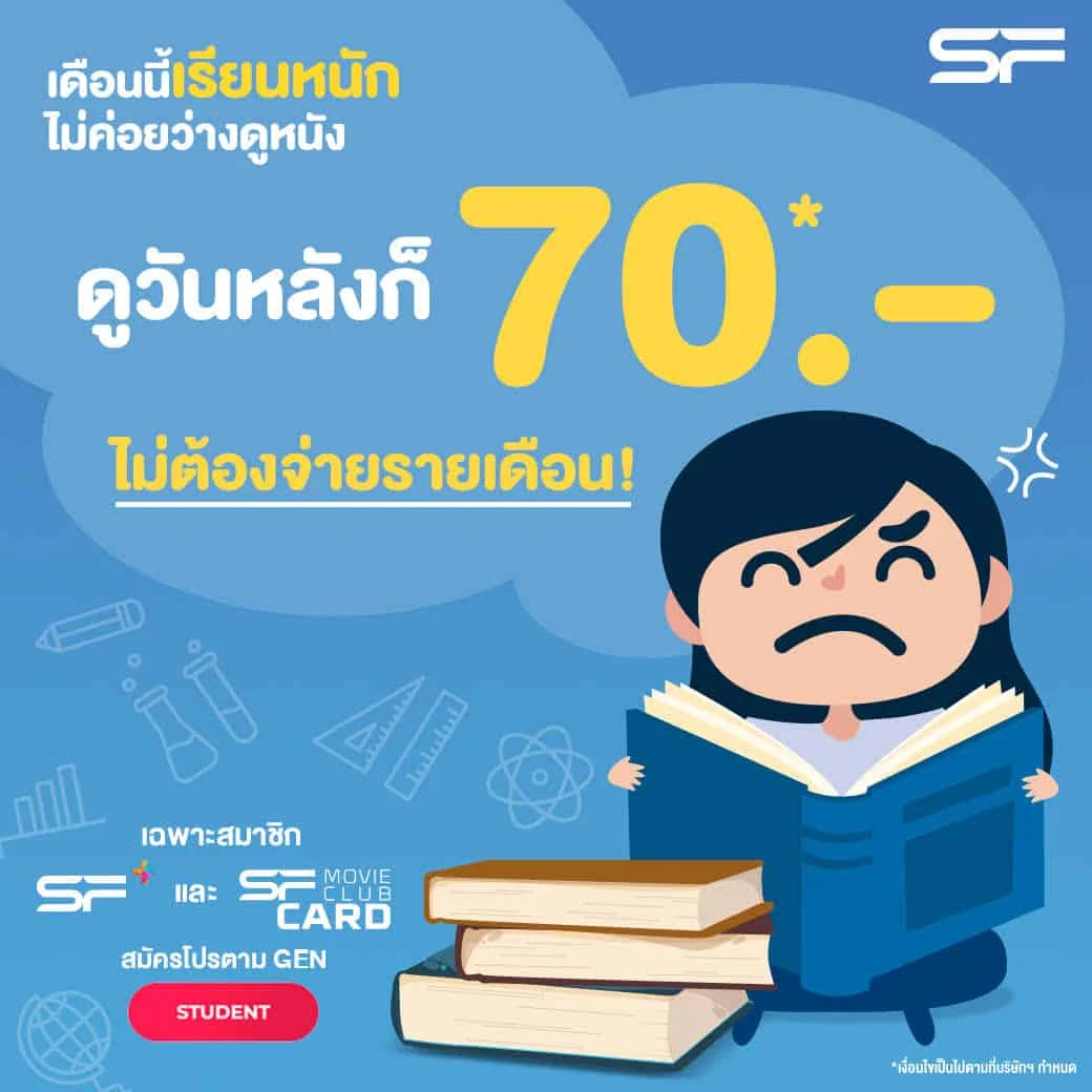 นักเรียน นักศึกษา ดูหนังที่ เอส เอฟ 70* บ. ดูได้ทุกเรื่อง ทุกรอบ ทุกวัน ไม่ต้องจ่ายรายเดือน
