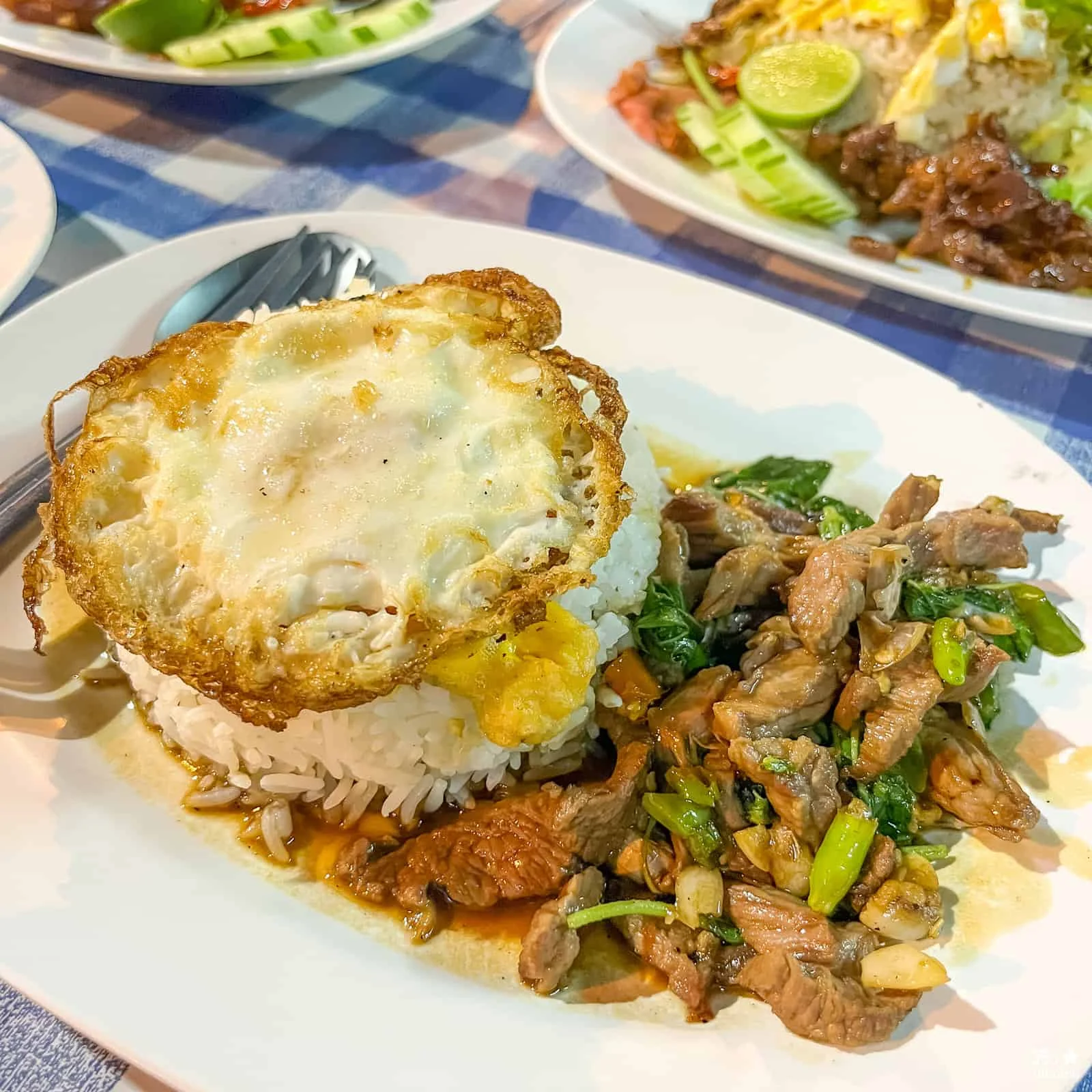 จัดได้ว่าเป็นขวัญใจของใครหลายๆ คน เพราะเปิดมาแล้ว 20 กว่าปี ที่หลังเลิกงานแล้วผ่านร้านนี้เป็นต้องแวะซื้อเป็นอาหารเย็น และเมนูที่เด่นสุดๆ ไปเลยก็คือ “ข้าวคลุกกะปิ” ที่มีกลิ่นหอมซะเหลือเกิน มันเย้ายวนใจมาก มาพร้อมกับเครื่องเคียงต่างๆ ที่ทำกันแบบใหม่ๆ เลย ข้าวคลุกกะปิก็ผัดใหม่ทุกจานเด้อ