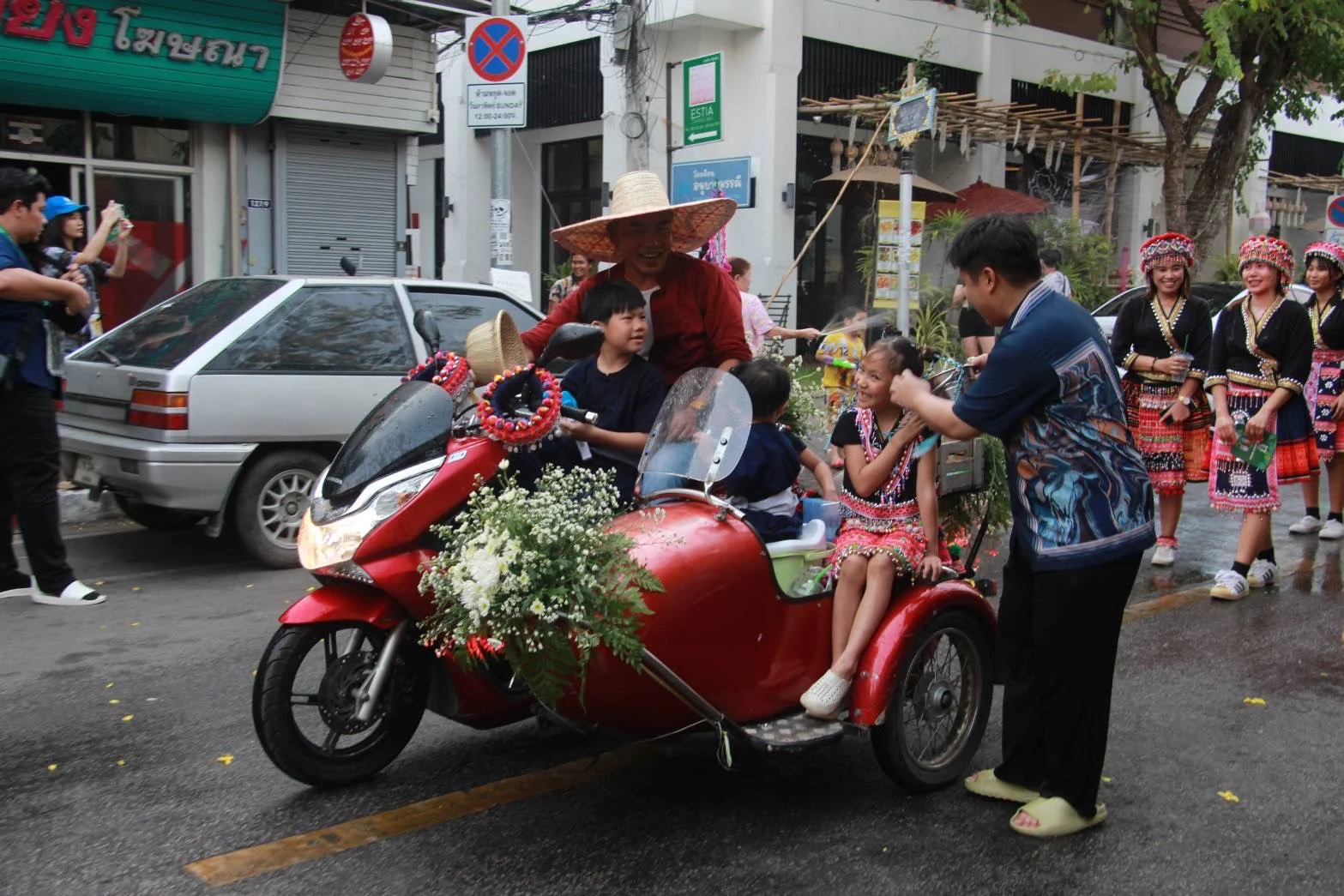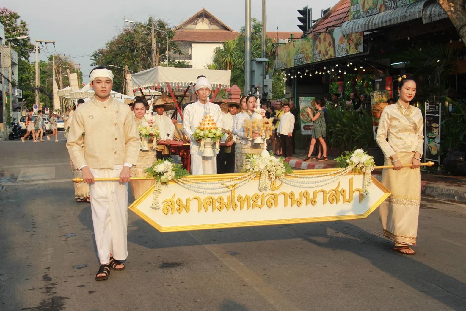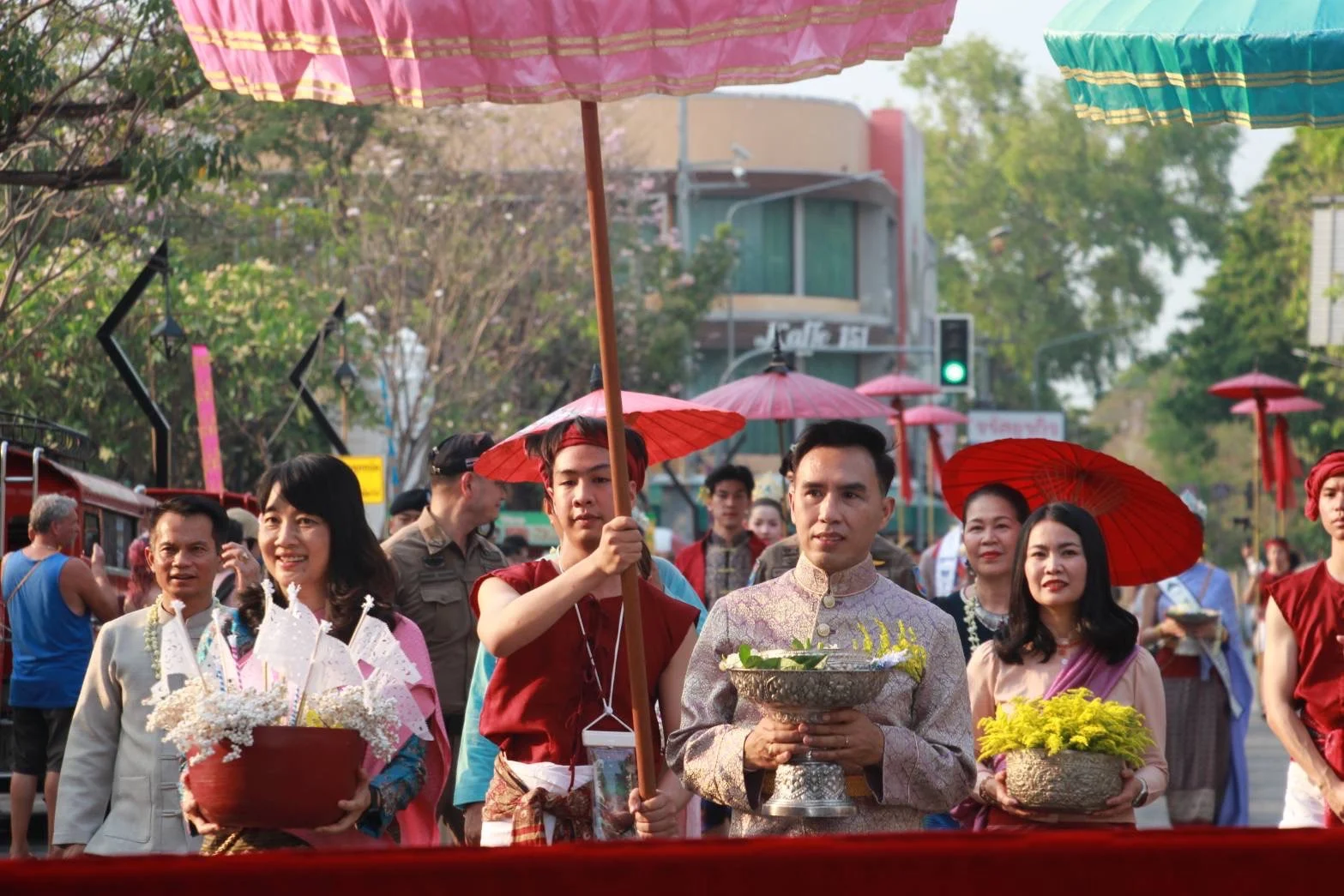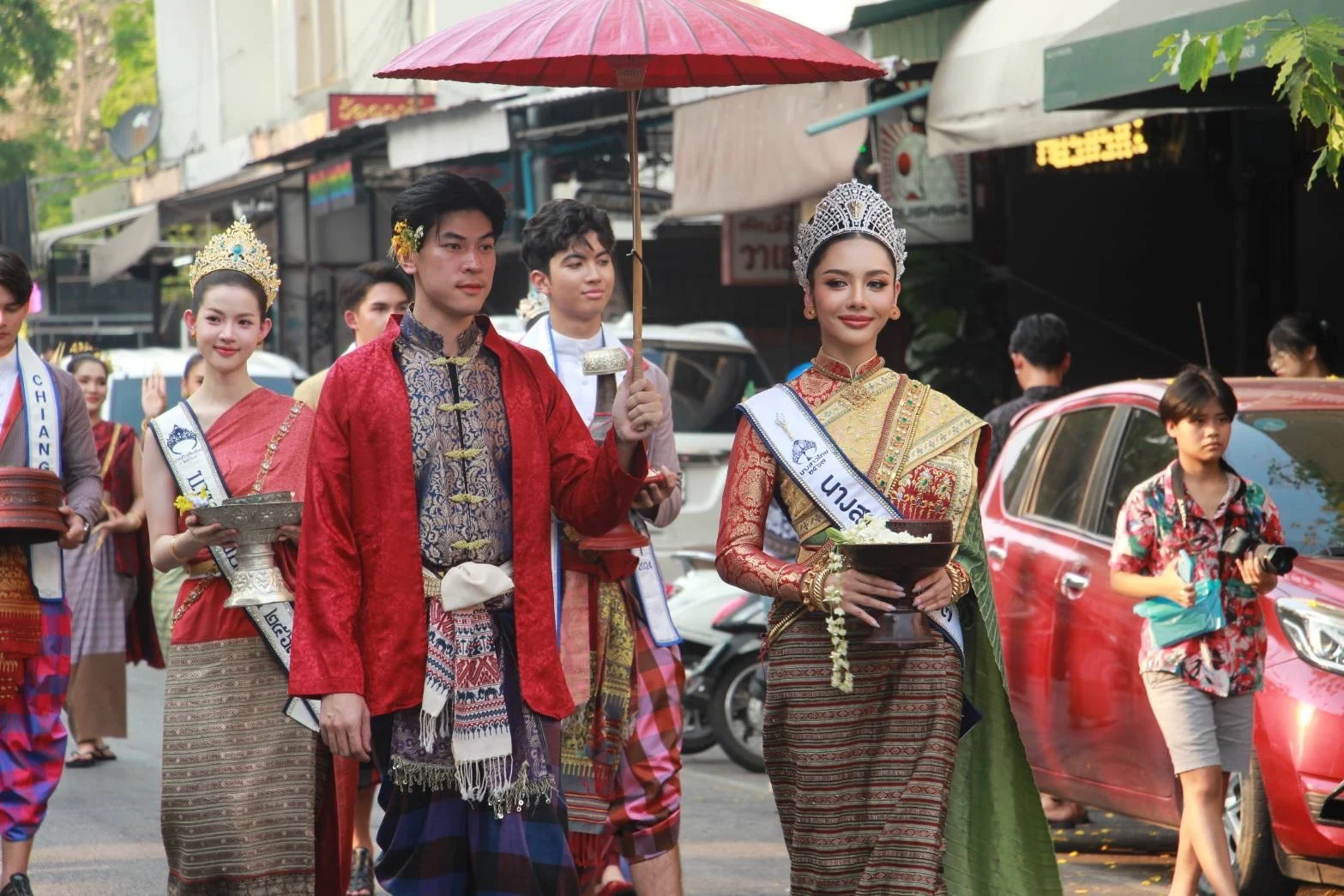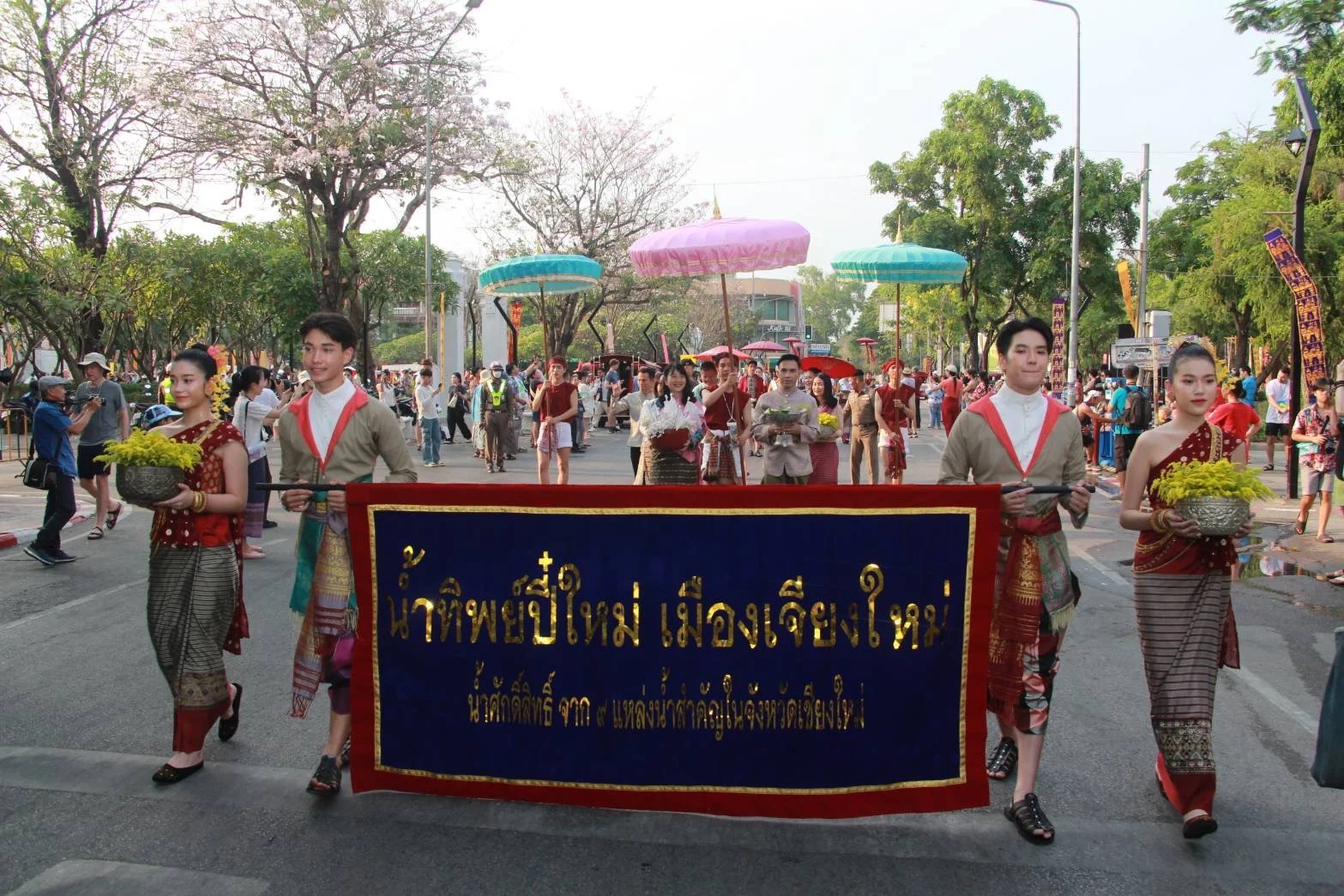 ประชาชนและนักท่องเที่ยวจำนวนมากต่างพากันมารอชมขบวนแห่ “ไหว้สาจุ่มสะหรีปี๋ใหม่เมือง” ตั้งแต่อนุสาวรีย์สามกษัตริย์ ถึงวัดพระสิงห์วรมหาวิหาร บรรยากาศเป็นไปอย่างคึกคักตลอดเส้นทาง เย็นวันนี้ (12 เม.ย. 67) ที่ลานพระบรมราชานุสาวรีย์สามกษัตริย์ จังหวัดเชียงใหม่ ประชาชนและนักท่องเที่ยวจำนวนมากต่างพากันมารอชมขบวนแห่ “ไหว้สาจุ่มสะหรีปี๋ใหม่เมือง” กันอย่างคึกคักตลอดเส้นทาง ซึ่งขบวนได้เริ่มเดินจากข่วงอนุสาวรีย์สามกษัตริย์ ไปยังวัดพระสิงห์วรมหาวิหาร เพื่อประกอบพิธีสวดเจริญพุทธมนต์น้ำทิพย์ศักดิ์สิทธิ์ ณ วิหารลายคำ วัดพระสิงห์วรมหาวิหาร โดยมี นายวีรพงศ์ ฤทธิ์รอด รองผู้ว่าราชการจังหวัดเชียงใหม่ นางสาวภัทรอนงค์ ณ เชียงใหม่ ผู้อำนวยการ การท่องเที่ยวแห่งประเทศไทย ภูมิภาค ภาคเหนือ ส่วนราชการ หน่วยงานภาคีเครือข่าย ร่วมเดินขบวนในครั้งนี้
