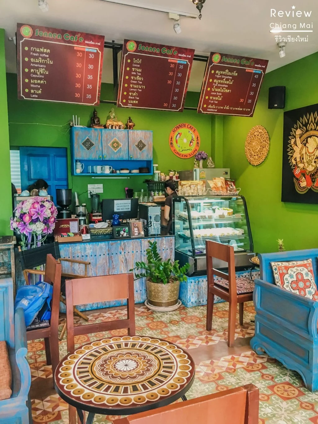 “ร้านนี้อยู่ในเชียงใหม่เหรอ?” “แกไปถ่ายที่ไหนมา” เพื่อนก็จะงงๆ หน่อย เมื่อเราเช็คอินที่ร้าน Sonnen caf’e อยู่นิมมานฯ นี่เอง ร้านนี้ตกแต่งสไตล์โมร็อคโค เน้นสีสันสดใสและลวดลายแปลกตา จัดมุม จัดแสงดีๆ ถ่ายมาทีเหมือนอยู่ต่างประเทศเลย แถมบรรยากาศของร้านยังร่มรื่น เย็นสบายเหมาะกับการนั่งพักผ่อนหรือนั่งทำงานสุดๆ