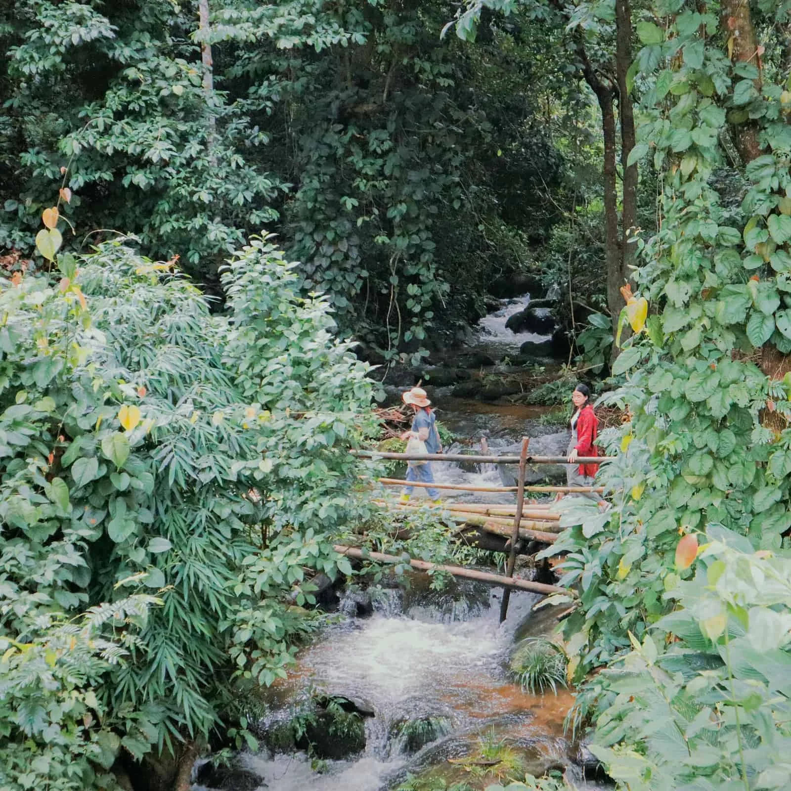 นานๆ ที่จะได้ออกมาเที่ยวแบนนี้ คนไม่เยอะ ไม่ต้องเบียด ยืนรอคิวถ่ายรูปนาน ถ่ายรูปสวยทุกมุม ไฮไลท์ ตรงนี้จะเป็นจุดที่สวยที่สุดของน้ำตกผาดอกเสี้ยว คือจะมีสะพานไม้ไผ่ทอดข้ามสายธาร