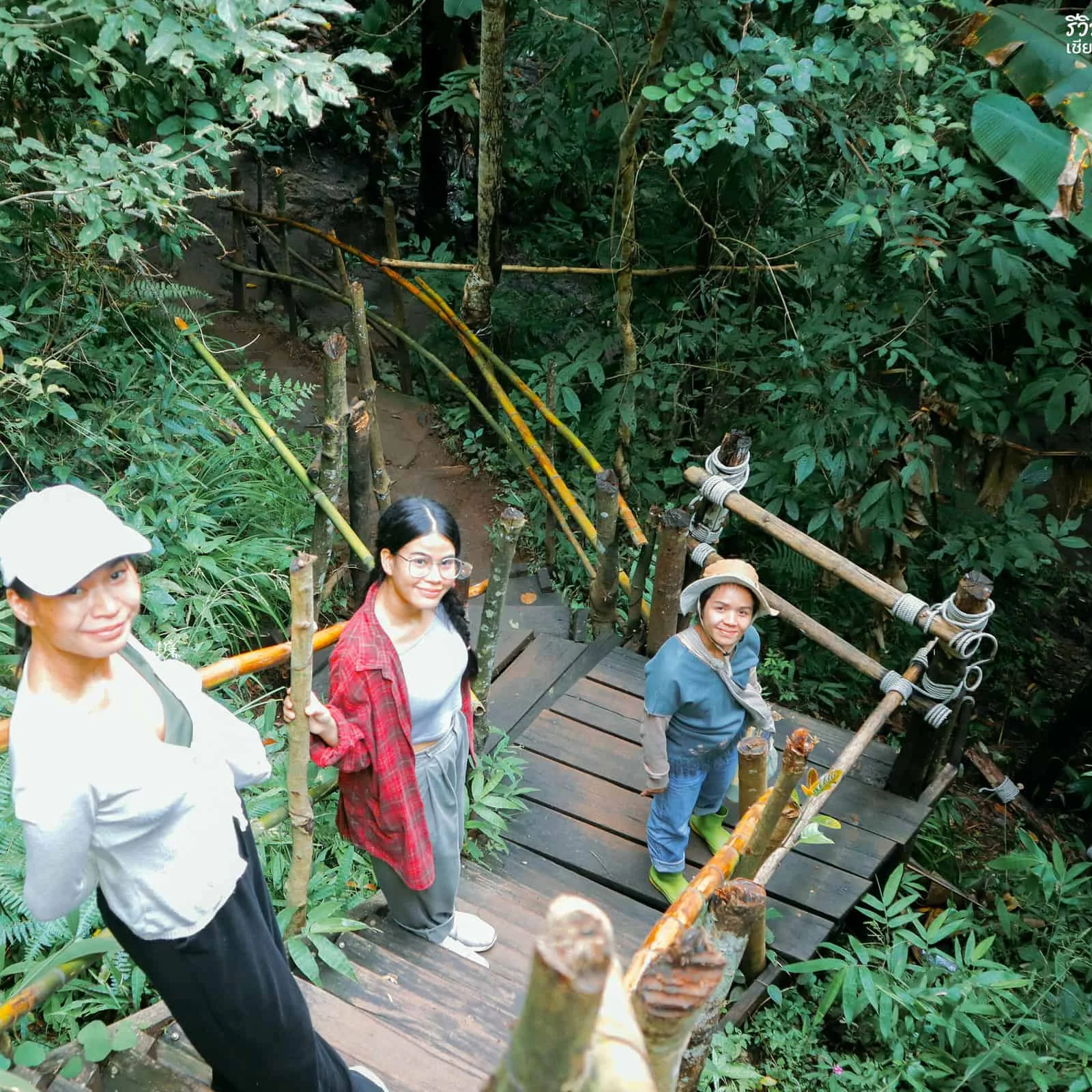 นานๆ ที่จะได้ออกมาเที่ยวแบนนี้ คนไม่เยอะ ไม่ต้องเบียด ยืนรอคิวถ่ายรูปนาน ถ่ายรูปสวยทุกมุม ไฮไลท์ ตรงนี้จะเป็นจุดที่สวยที่สุดของน้ำตกผาดอกเสี้ยว คือจะมีสะพานไม้ไผ่ทอดข้ามสายธาร