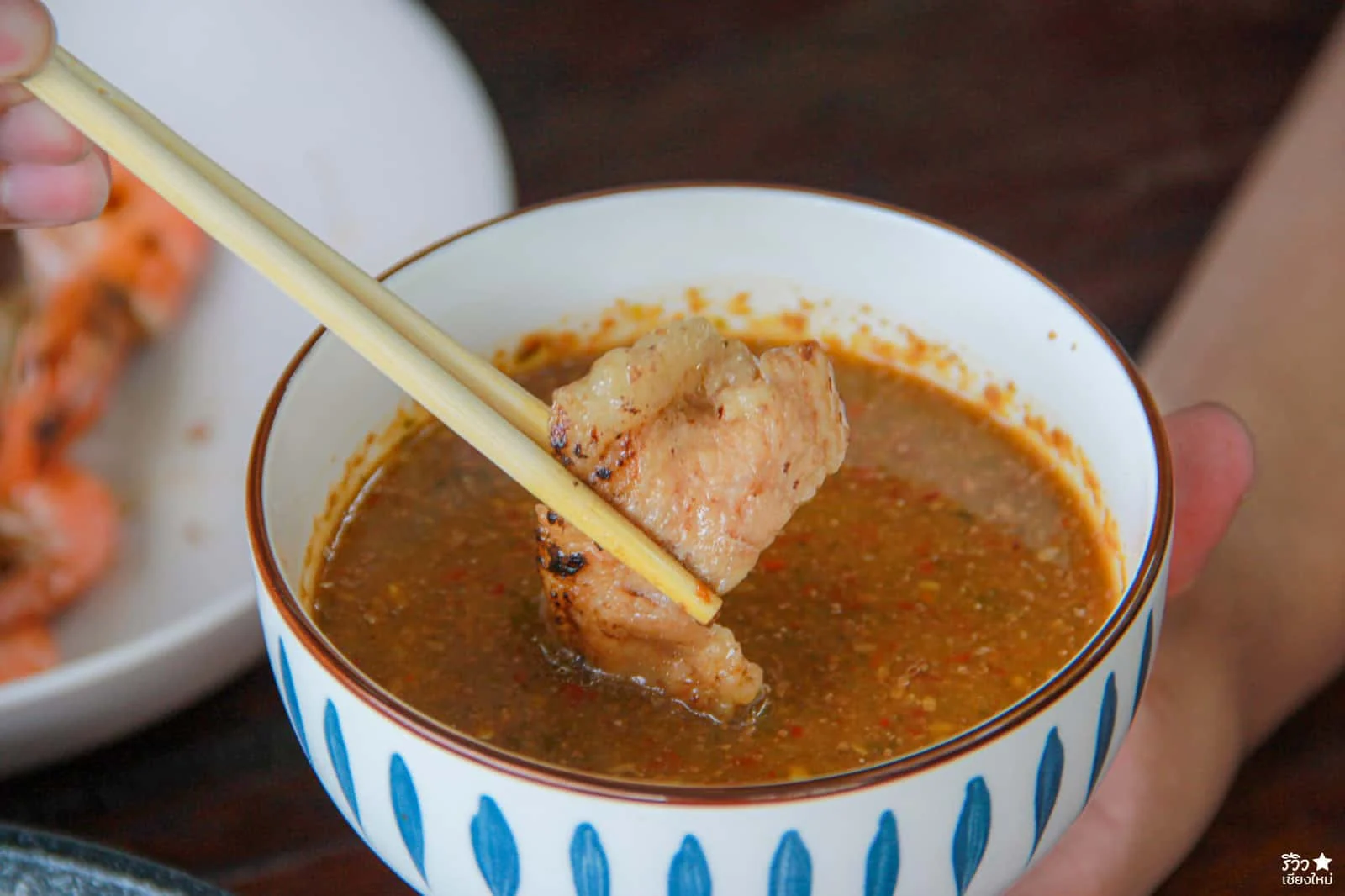 ย่างเสร็จจิ้มได้ หมูคือสุกไวมาก แอดก็ขอชิมคำแรกก่อนเลยจ้า มากับน้ำจิ้มรสเด็ดที่แอดปรุงเอง เข้ากันมาก เนื้อนุ่ม หอม กำลังดี