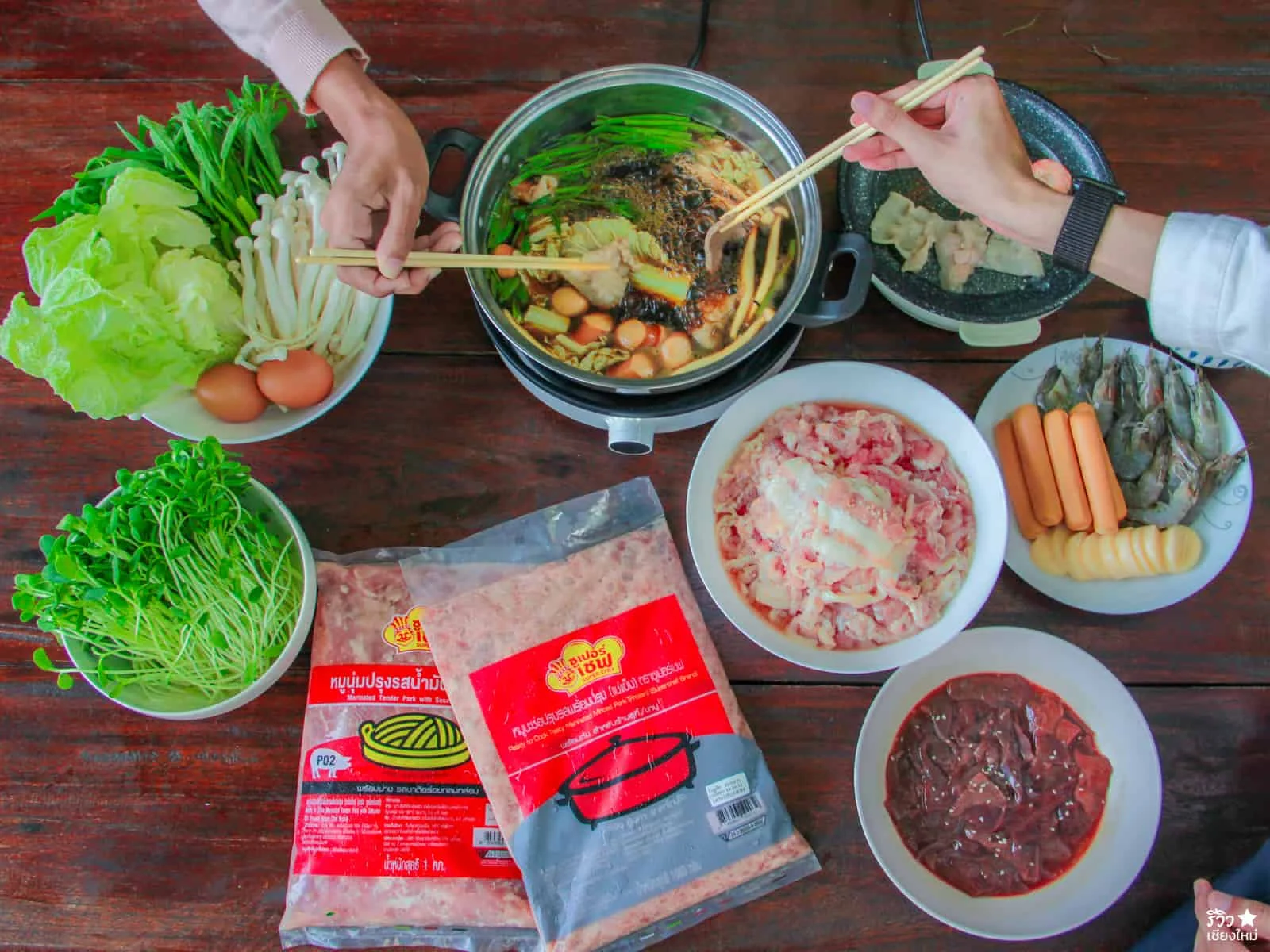 แค่นี้ก็เอ็นจอยกันได้ง่ายๆ แล้วจ้า ขอตัวไปตักหมูบะช่อปรุงรสลงหม้อชาบูก่อนเน้อ ขอบอกว่าเด้ง นุ่ม ดีมาก ปั้นก้อนจุ่มลงในหม้อชาบูก็คืออร่อยเหาะ